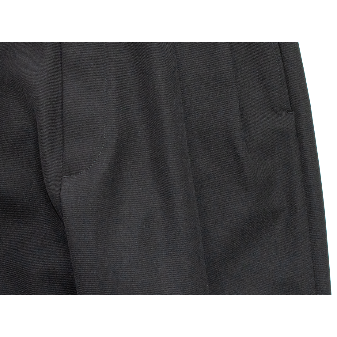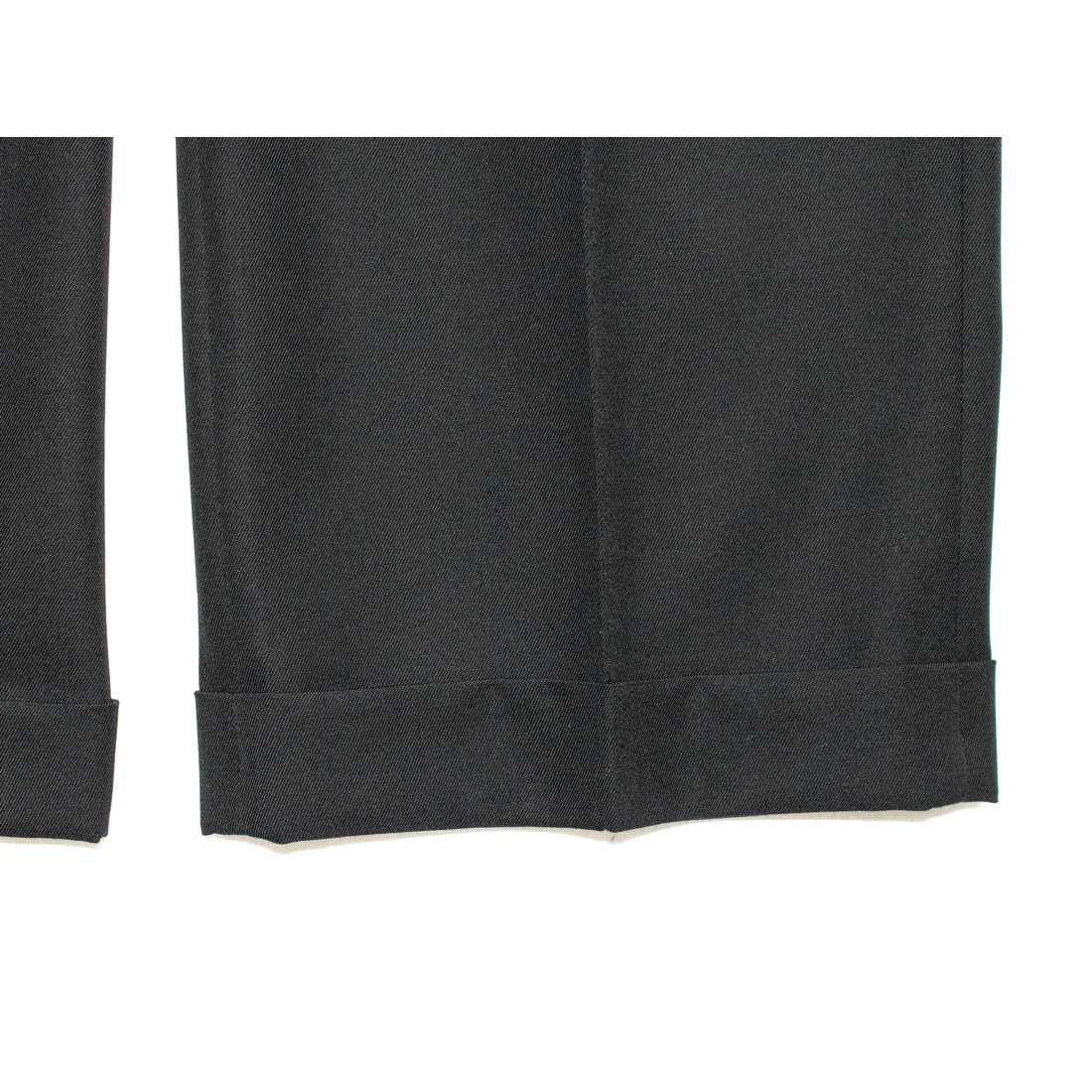 肌さわりの良い上質なポリエステル×ウール素材を使用したツータックパンツ。ベルトループ、ホック+ボタンフライのフロント、スリットポケットや裾をダブルの仕様にすることでマニッシュな印象を強調した一枚。バックスタイルにはメゾンを象徴するホワイトの4本ステッチが施されている。