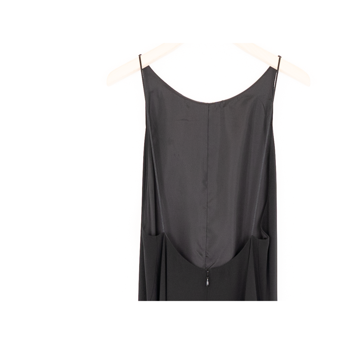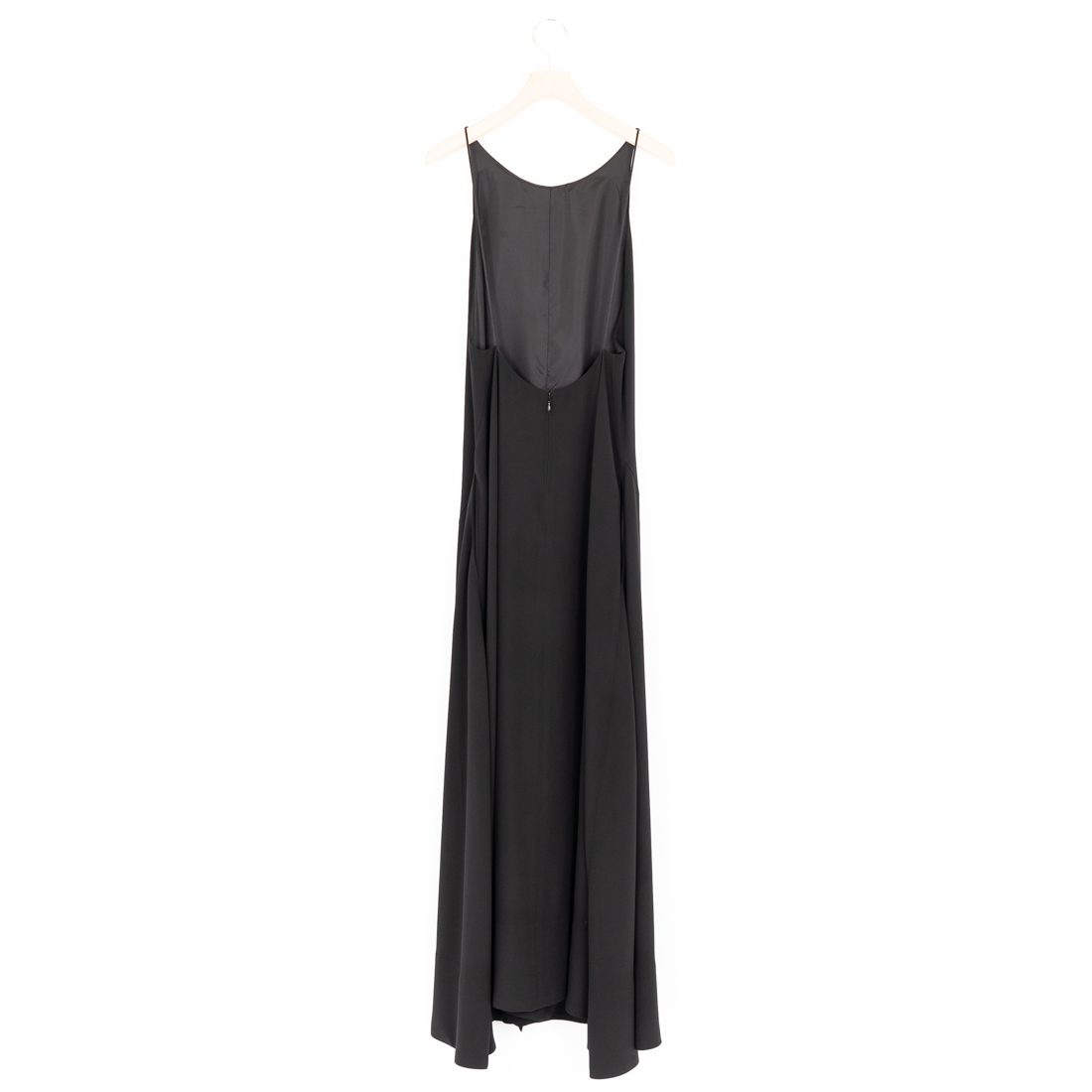 HARUNOBUMURATA:2018年スタート。コンセプトは”Luxury of Silence”。クリーンでシンプルなカットに上質な素材、ニュートラルな色彩を特徴としている。ヴィスコースとアセテートを使用したなめらかで落ち感の良い素材が上品なキャミソールドレス。長めの着丈、大きく取られた裾幅が印象的。生地にしっかりとした落ちる感があるため、生地と生地が重なるドレープ感が美しシルエットを生み出している。