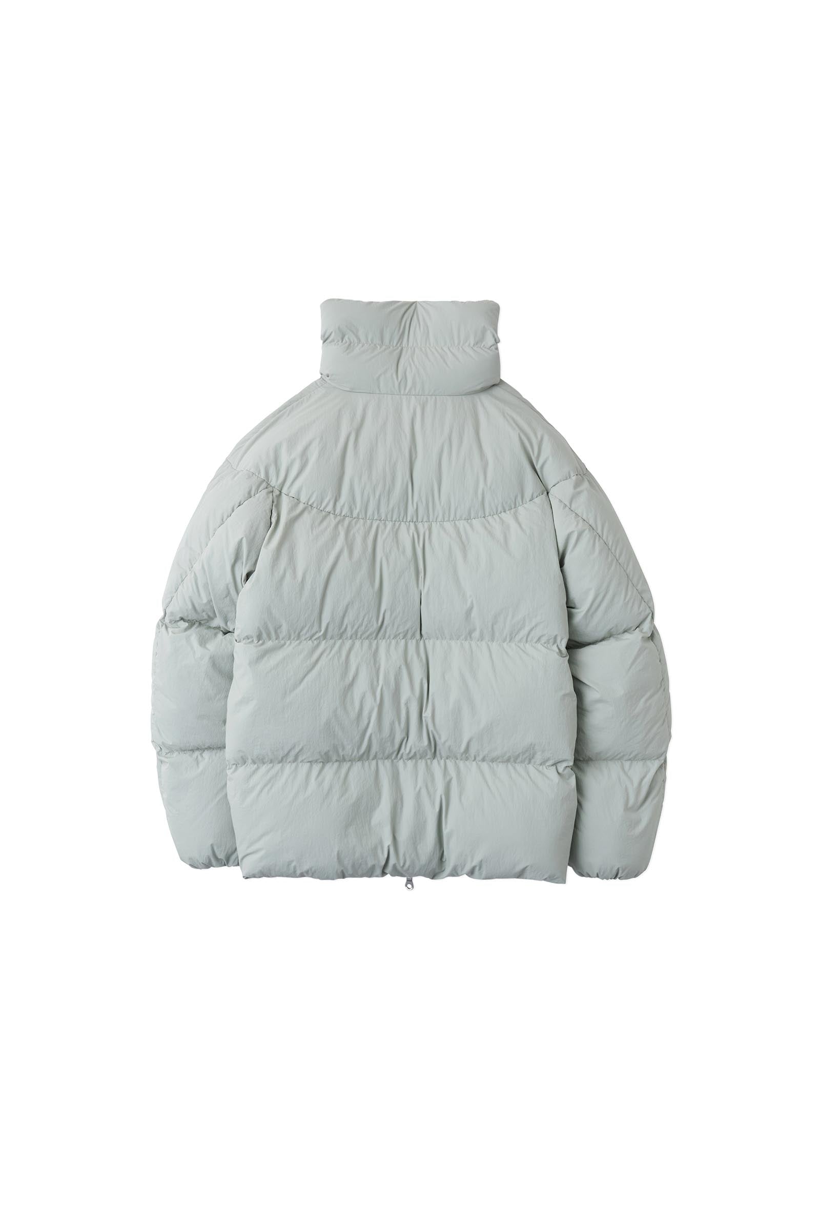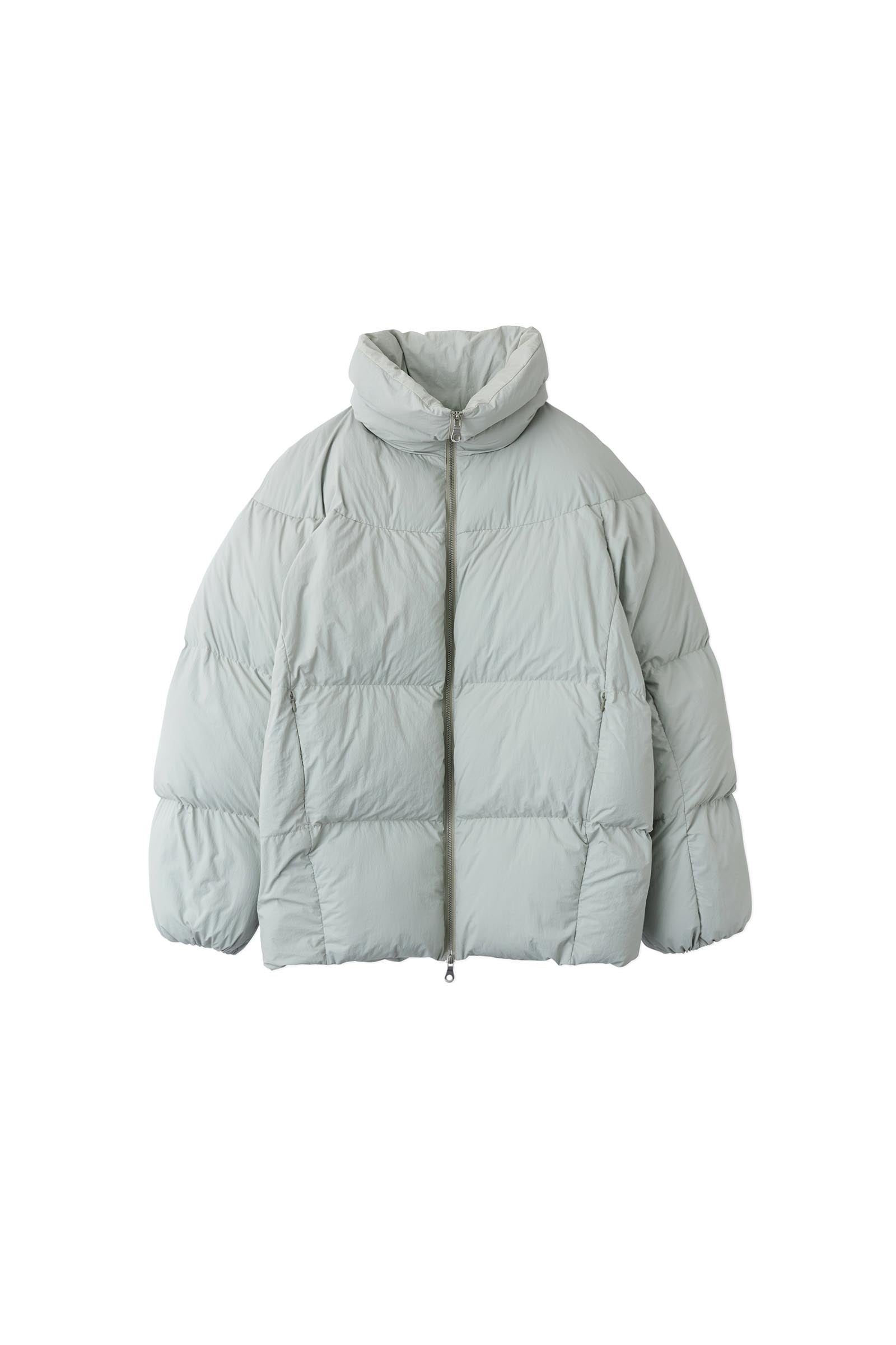 エコダウンを使用したボリューム感のあるダウンジャケット。OLMETEX社の肌触りの良いポリエステルのシェルに肉厚なダウンが重なりインパクトのある印象に。オーバーサイズのシルエットにカップショルダーがプレーンな印象をプラス。高めに設定されたネックはすべて締めることでマフラーいらず。防寒性、機能性を兼ね備え、エコダウンを使用することでサスティナブルな仕上がりにもなっている。