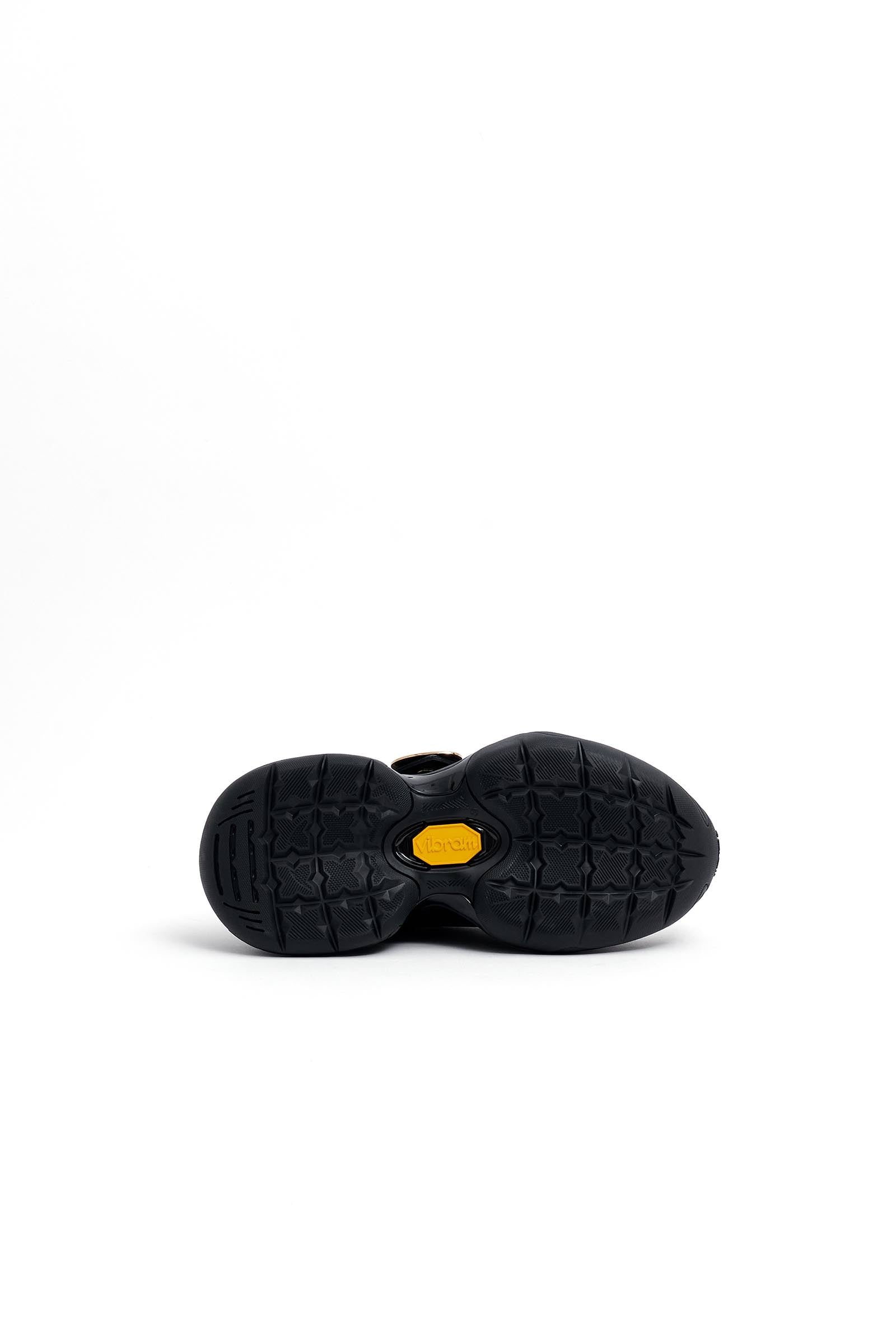 OAOとコラボレーションした柔らかなレザーソールと心地の良いホールド感が特徴のスニーカー。ストラップには HARUNOBUMURATAのシグニチャーとなるゴールドプレートをベルトにあしらっている。厚さ約5.8cmのVibram®︎社の最新ソールを採用し、高反発ウレタンインソールとコルク製中底を組み合わせることで過去最高の柔らかな履き心地を実現。