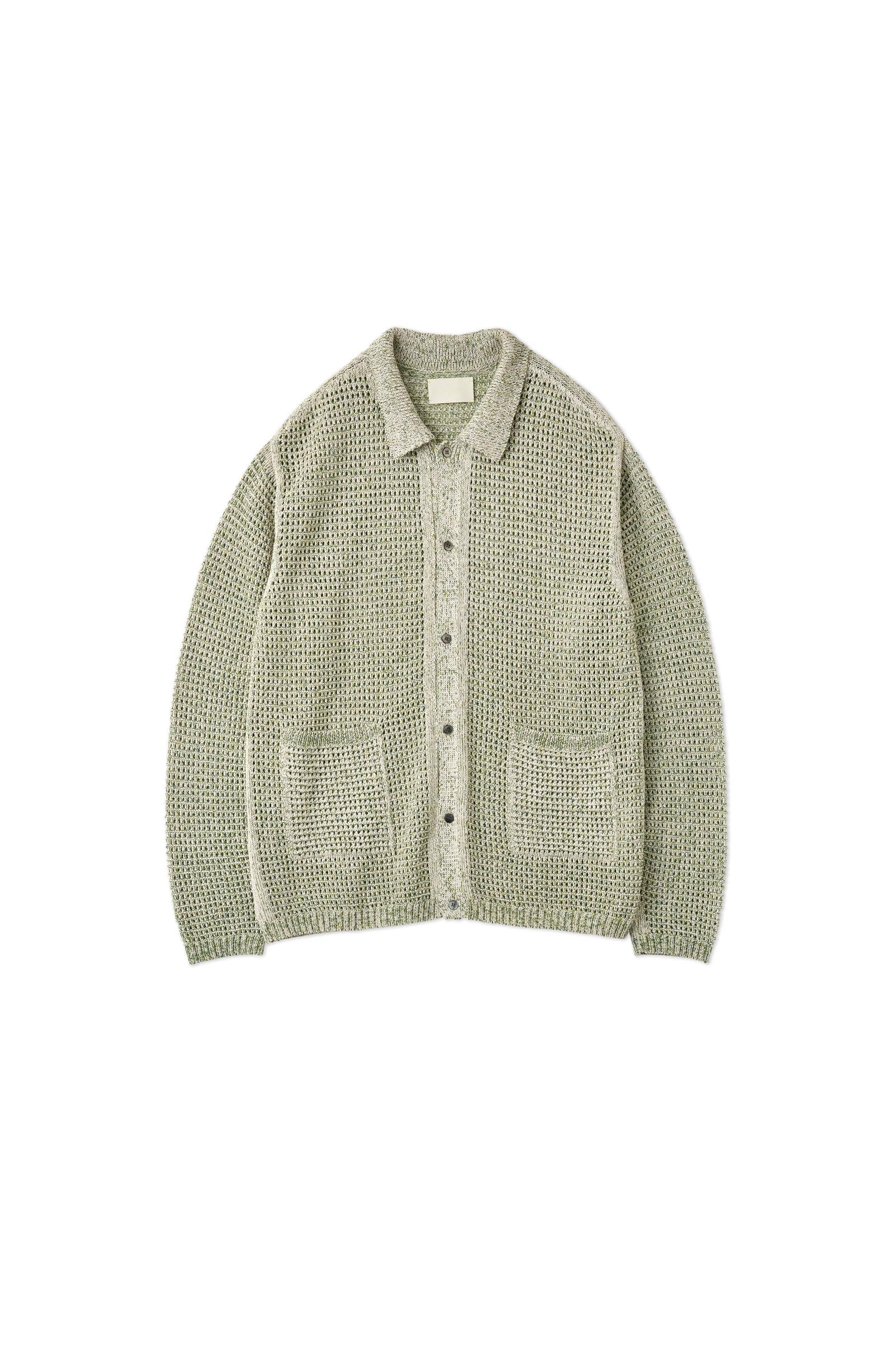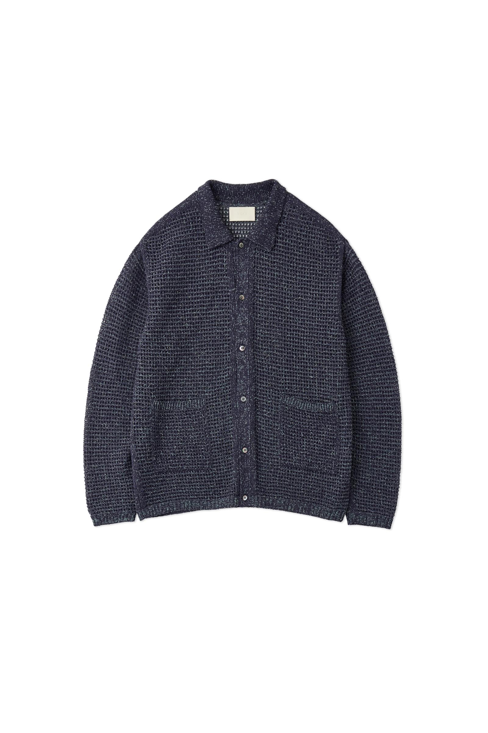 YOKE / MESH KNITTED SHIRT CARDIGAN