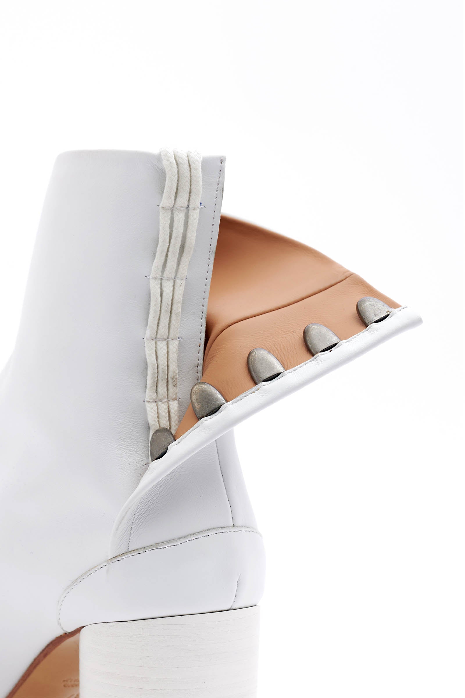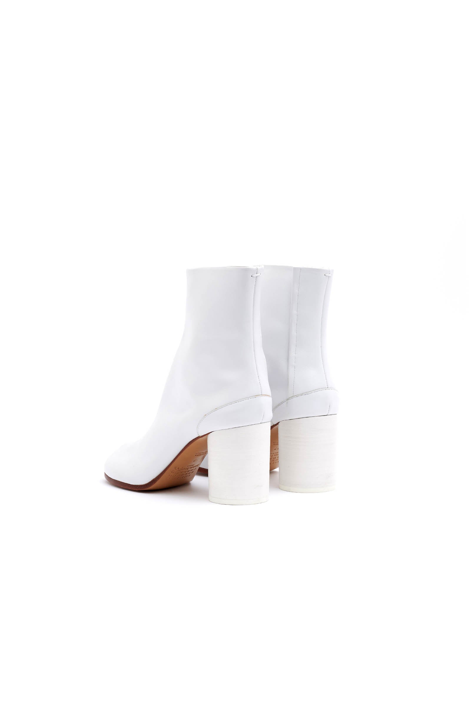 上質でしなやかなレザーを使用したTabiブーツ。8cmの円錐ヒール、バックにはコントラストを生み出すホワイトのステッチが印象的。素足にヒールがついたような着心地とシーンを選ばずコーディネートに取り入れられるデザインは秀逸。