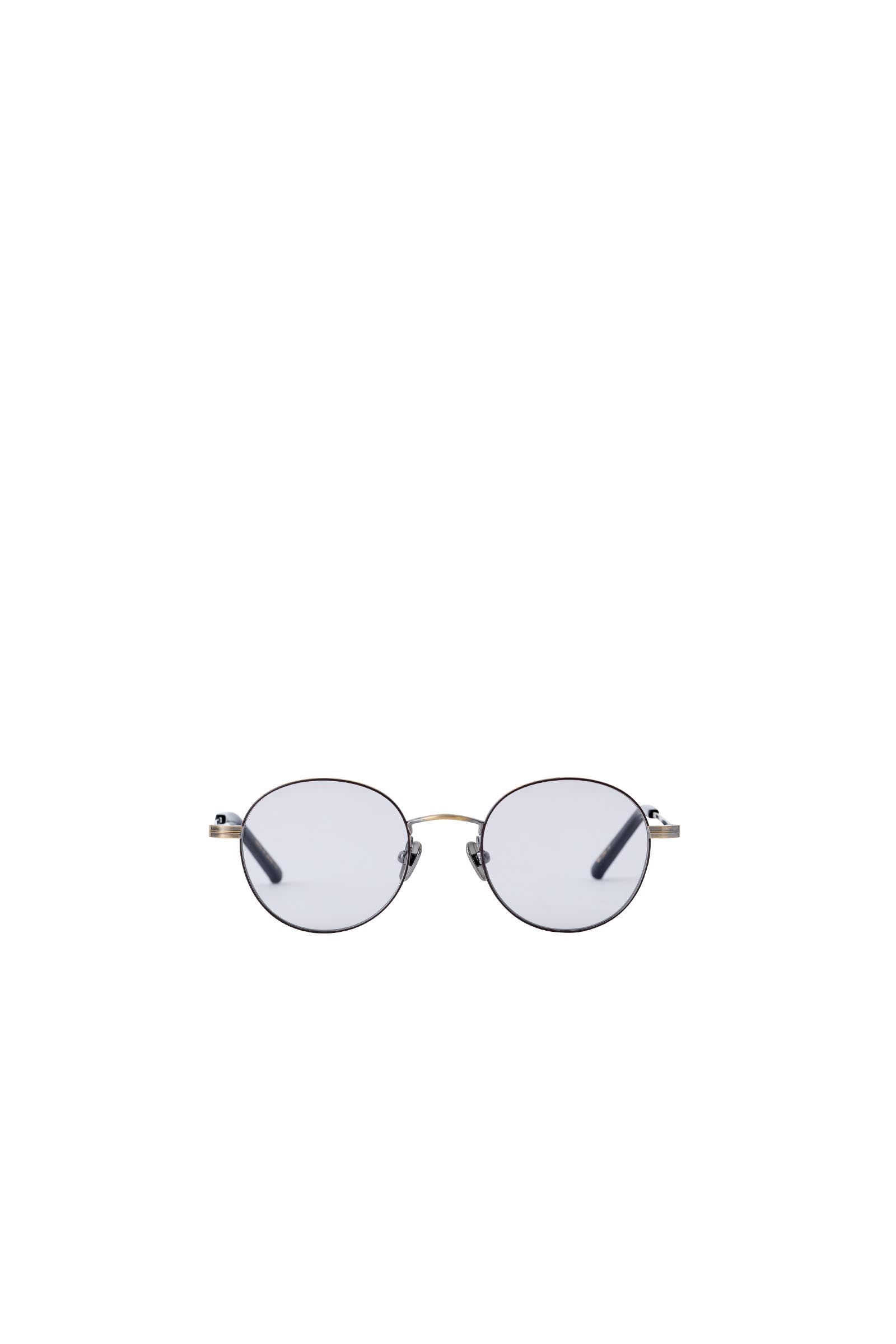thomasからソフト枠とナイロールを削ぎ落とし、フロントをβチタンで0.75cmまで細く仕上げている。kearny史上最高の細さで作られた一本。繊細で控えめな作りではあるがチタンの質感とやや丸みのあるフォルムが奥行きのある色合いのグレーレンズと相性がよく、しっかりとした存在感を与えてくれる。