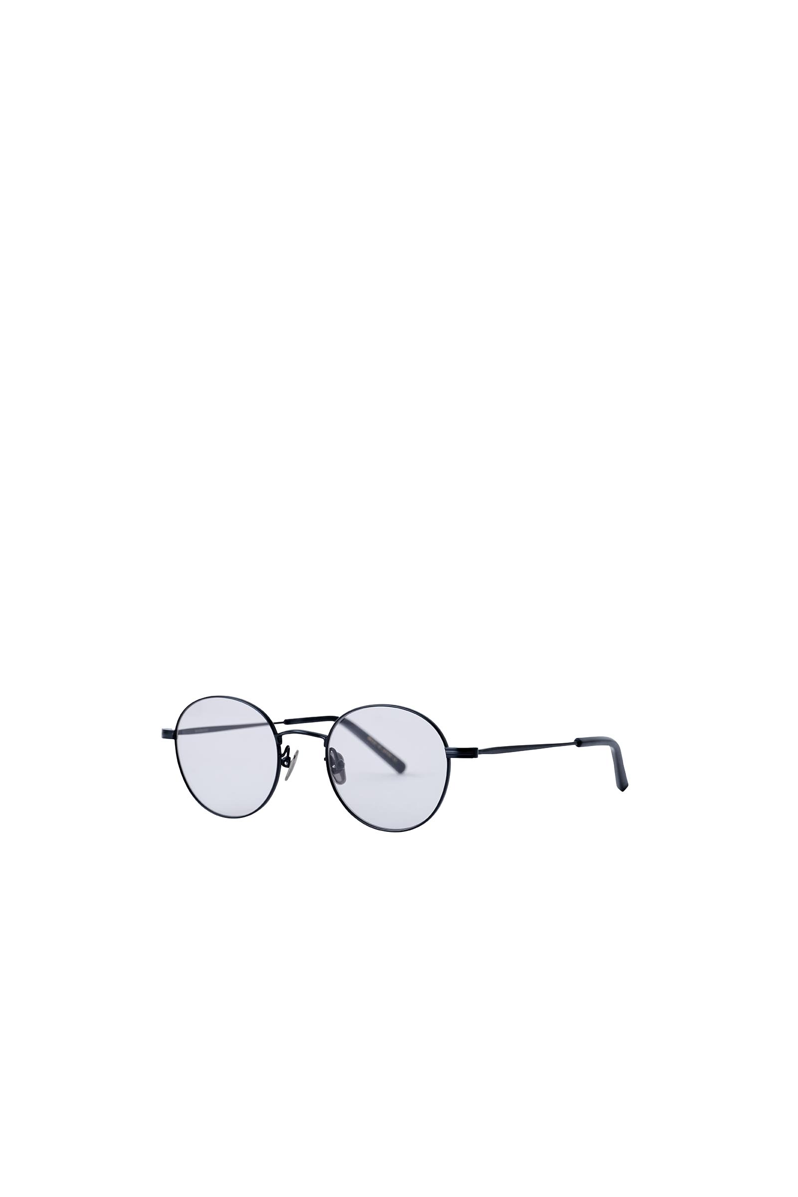 thomasからソフト枠とナイロールを削ぎ落とし、フロントをβチタンで0.75cmまで細く仕上げている。kearny史上最高の細さで作られた一本。繊細で控えめな作りではあるがチタンの質感とやや丸みのあるフォルムが奥行きのある色合いのグレーレンズと相性がよく、しっかりとした存在感を与えてくれる。