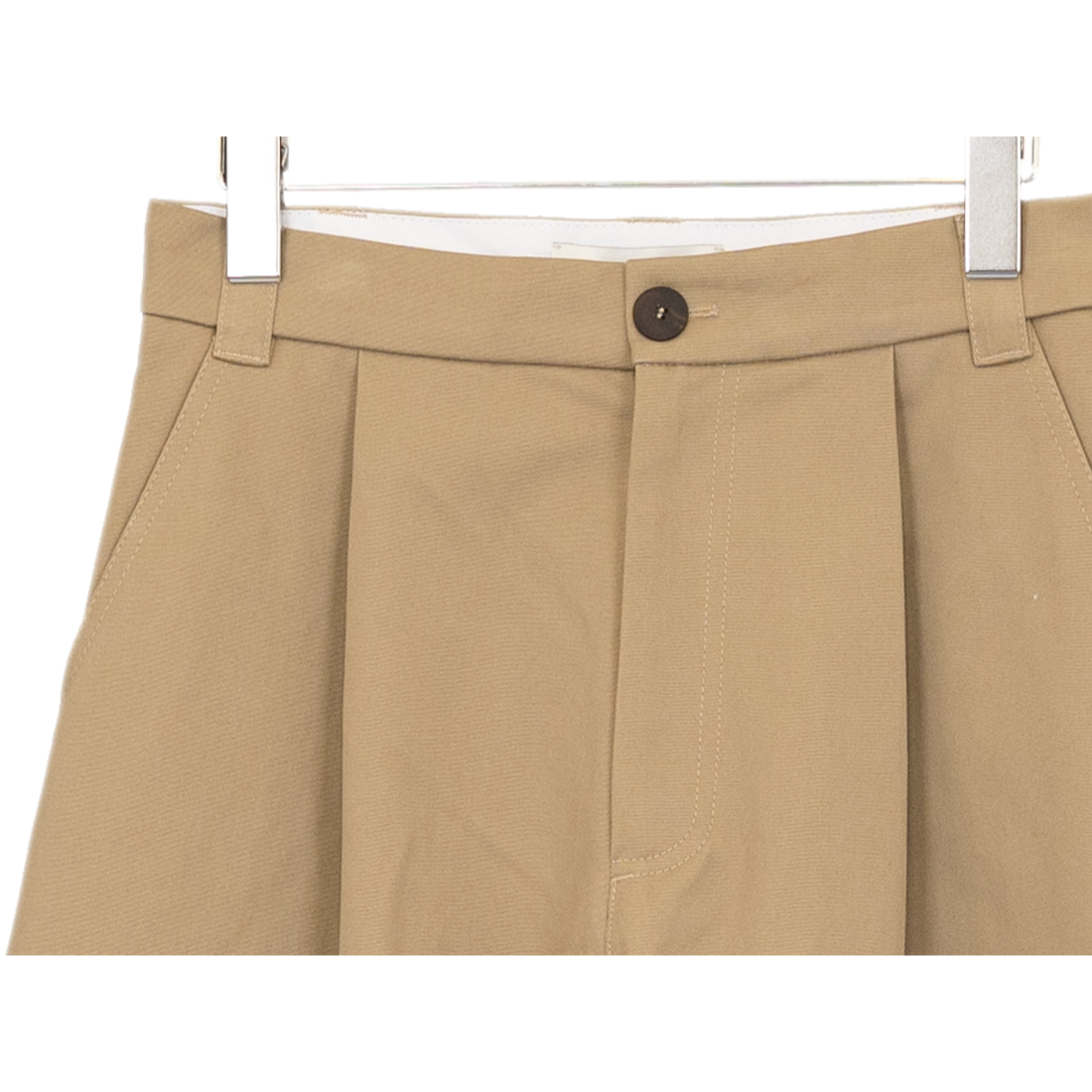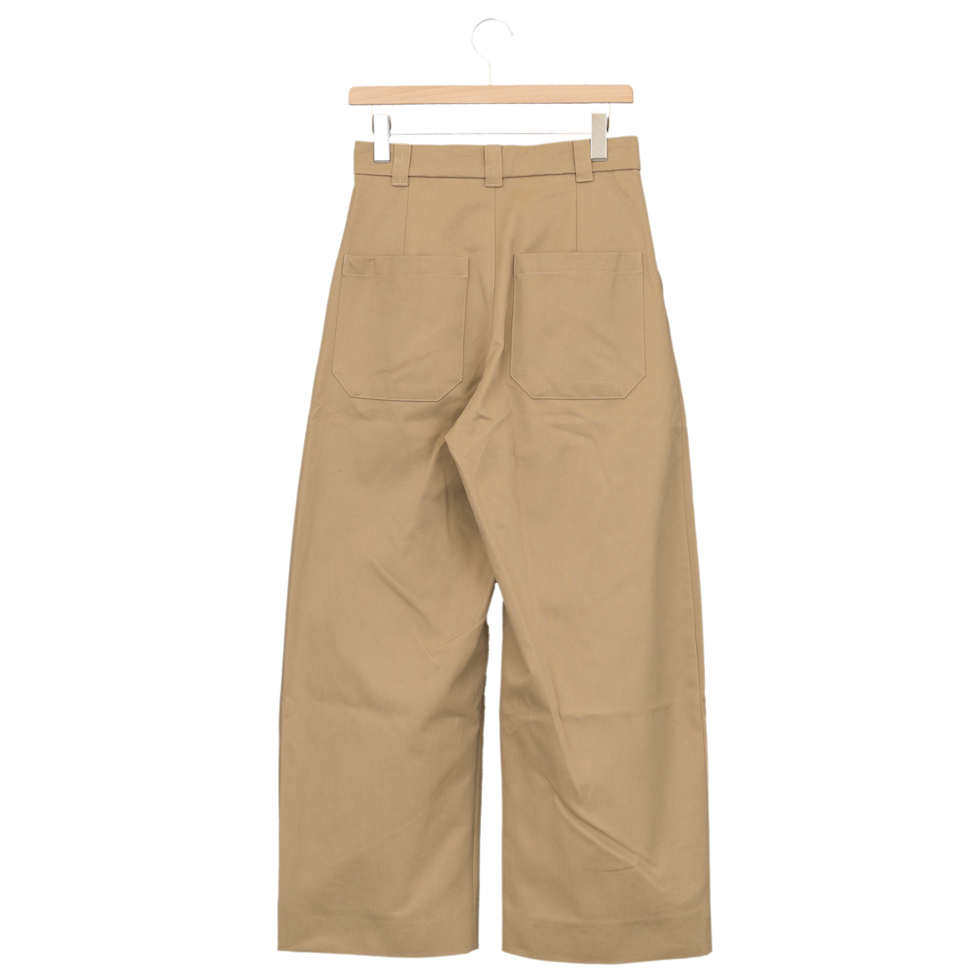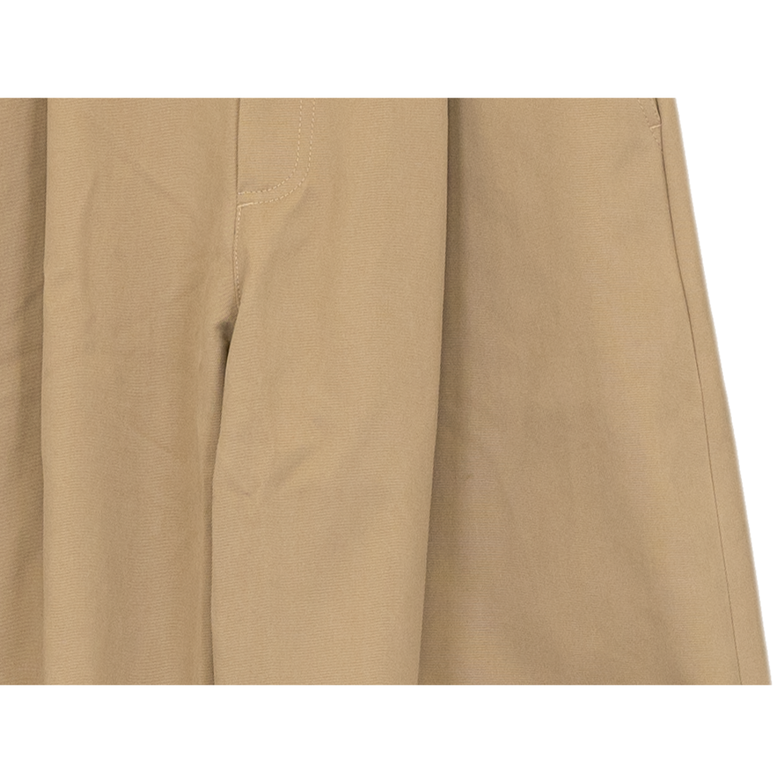 上質で肉厚なコットンをピーチ加工で仕上げたボリュームパンツ。 しっかりとしたハリと厚みのあるツイルをピーチスキン加工(表地に桃の表面のような短い毛羽をつくり、しなやかで温かい風合いに仕上げる加工)によって柔らかい質感に昇華した生地が季節感を演出してくれる。シルエットは深めに入ったタックがボリューム感を出してくれるワイドシルエット。ミニマムにまとめられた中にSTUDIO NICHOLSONらしいエッセンスが凝縮されている。