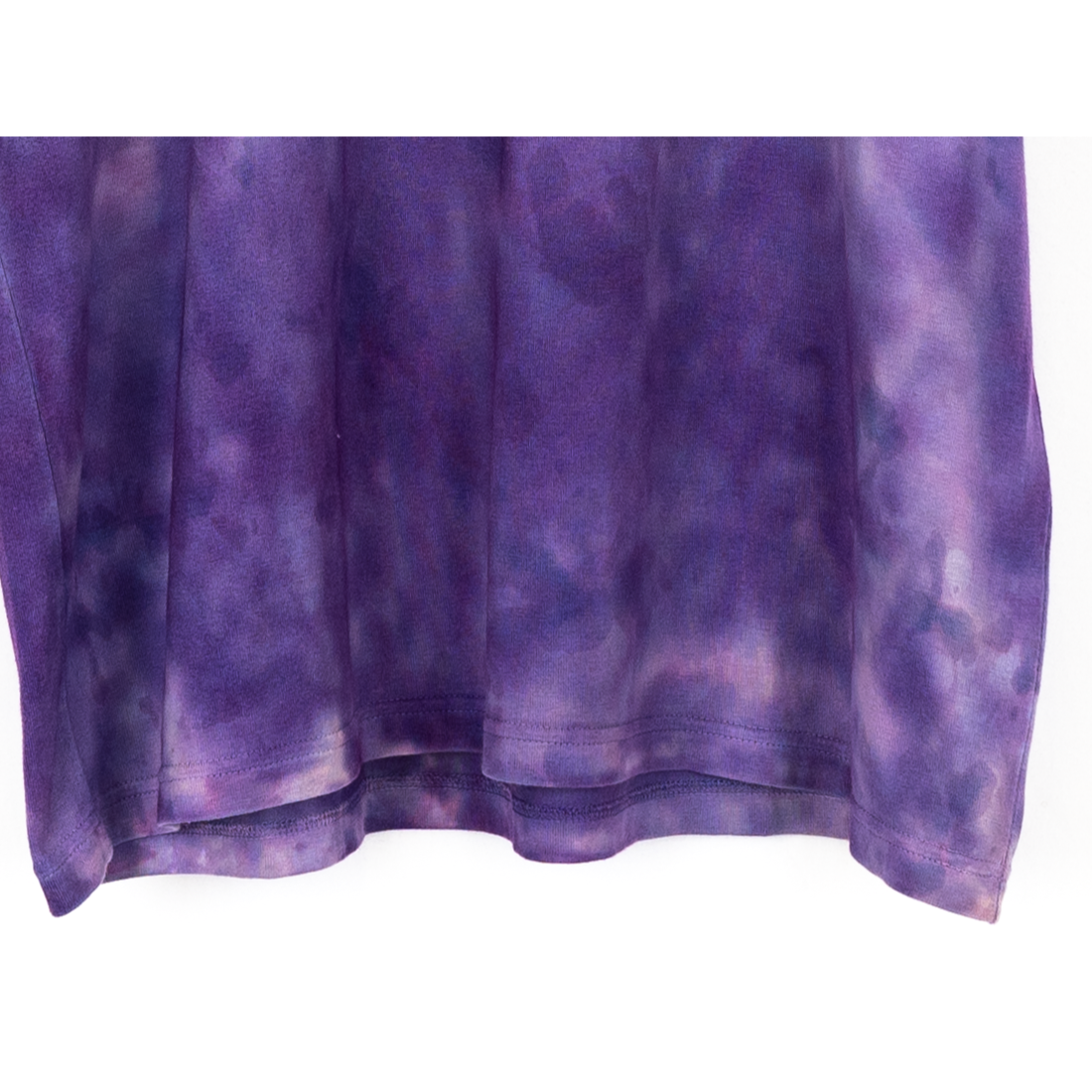 ”染め”表現を独自のフィルターで研究し、掘り下げている畑野さんにお願いしたタイダイTシャツ。希少な蛍光イエローの染料を使用し、最初に薄い膜をはるようなイメージで染めてもらい、そこから薄く色を5〜7層と重ねていき1点1点違った表現、方法で染色し製作。生地、染める時間、絞りの強さ、染料同士の相性、色の出し方など様々な要素から色、柄がつくり出されていきる。ボディはこのTシャツを製作するために、事前に染料の入り方、着心地、染め後のシルエットのバランスを実験し製作したオリジナルのコットンボディを採用。