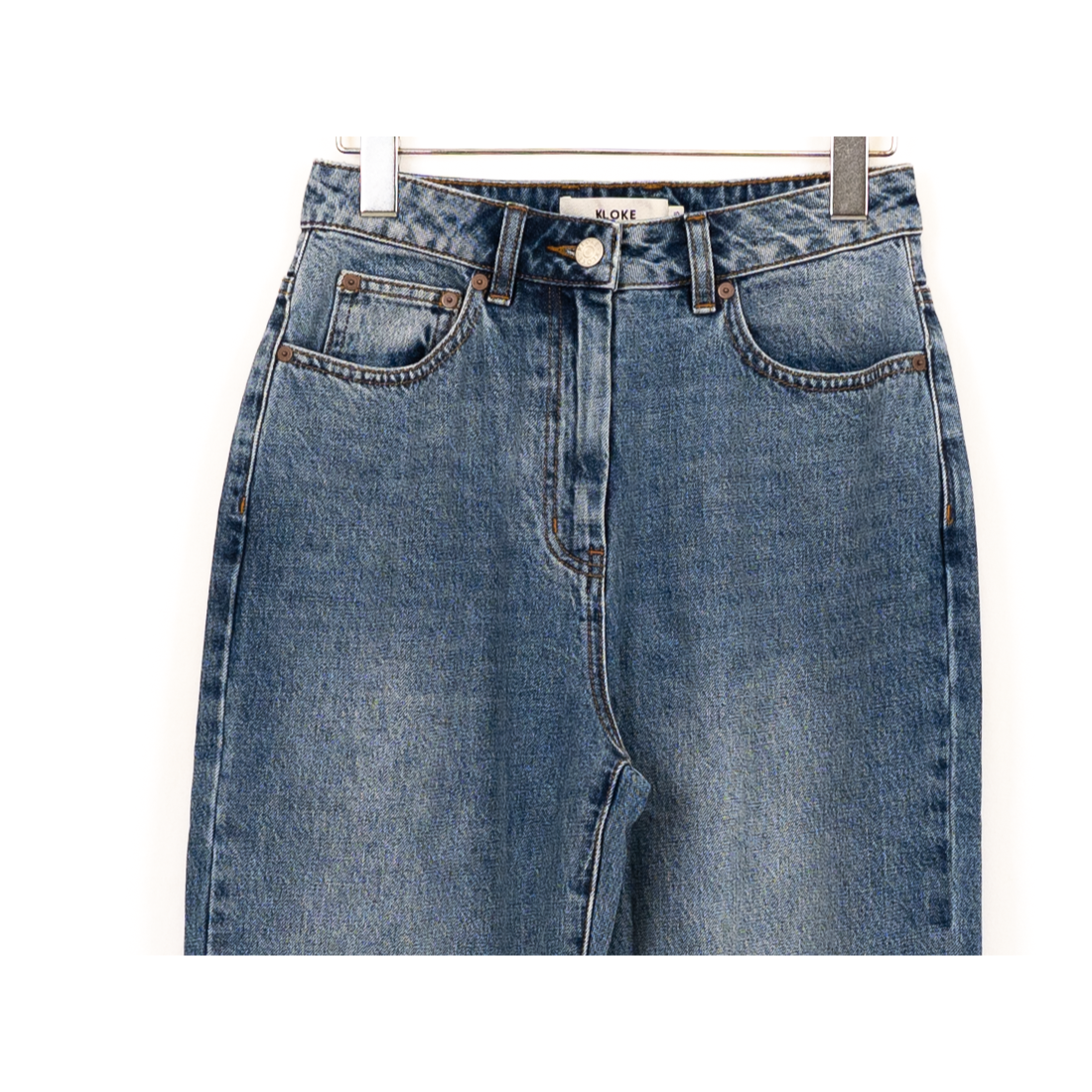 新しいKlokeシグネチャーデニム。 バックヨーク付きのストレートスリムパンツ。5ポケットのディテール。 伝統的な形ではあるが、美しく落ちるストレートシルエットが魅力の一本。