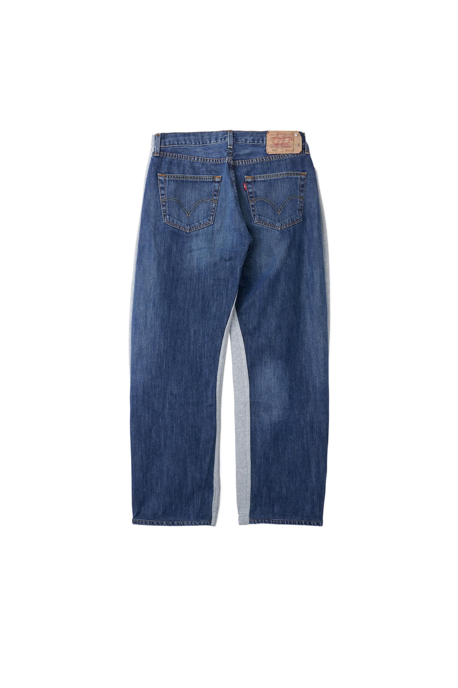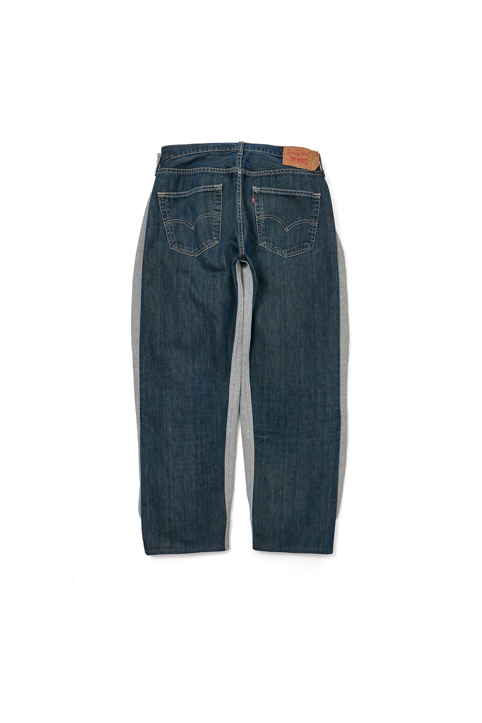 KEYWORDS for BLESS WEAR・UNISEX 性別問わず・AGELESS 年齢にかかわらず・TIMELESS 時代に左右されず・BORDERLESS 国籍問わず、永く愛用される洋服であること。スウェット、デニムをかけ合わせたオーバーサイズのジーンズ。大振りなシルエットは紐を縛ることでギャザーができ、独特なシルエットを生み出す。