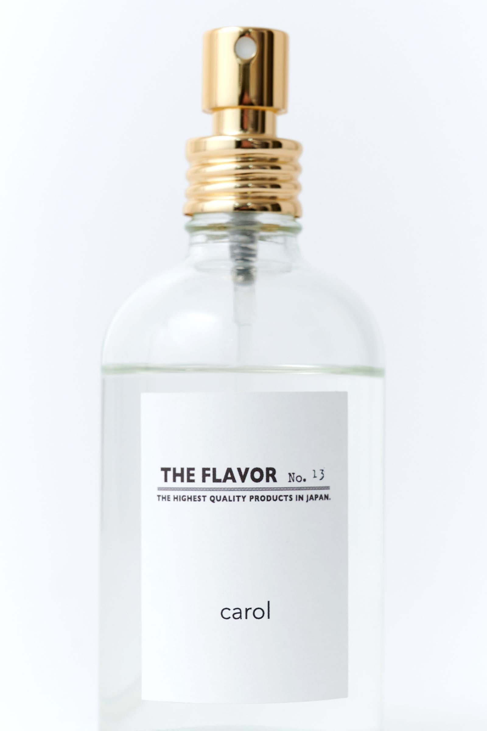 合理的でない生産工程の中、様々な角度から商品を深く追求し新しいモノを創造していく THE FLAVOR designと共同で香りを調香、製作したcarol別注のMISTになります。ファブリックミスト、ルームスプレーとして衣類から空間まで幅広く香りをお楽しみいただけるミストタイプ。瞬時に香りの広がるよう独自の製法で製作された噴出口で、通常のスプレータイプよりも香りが細かく広がるデザインのものを使用。