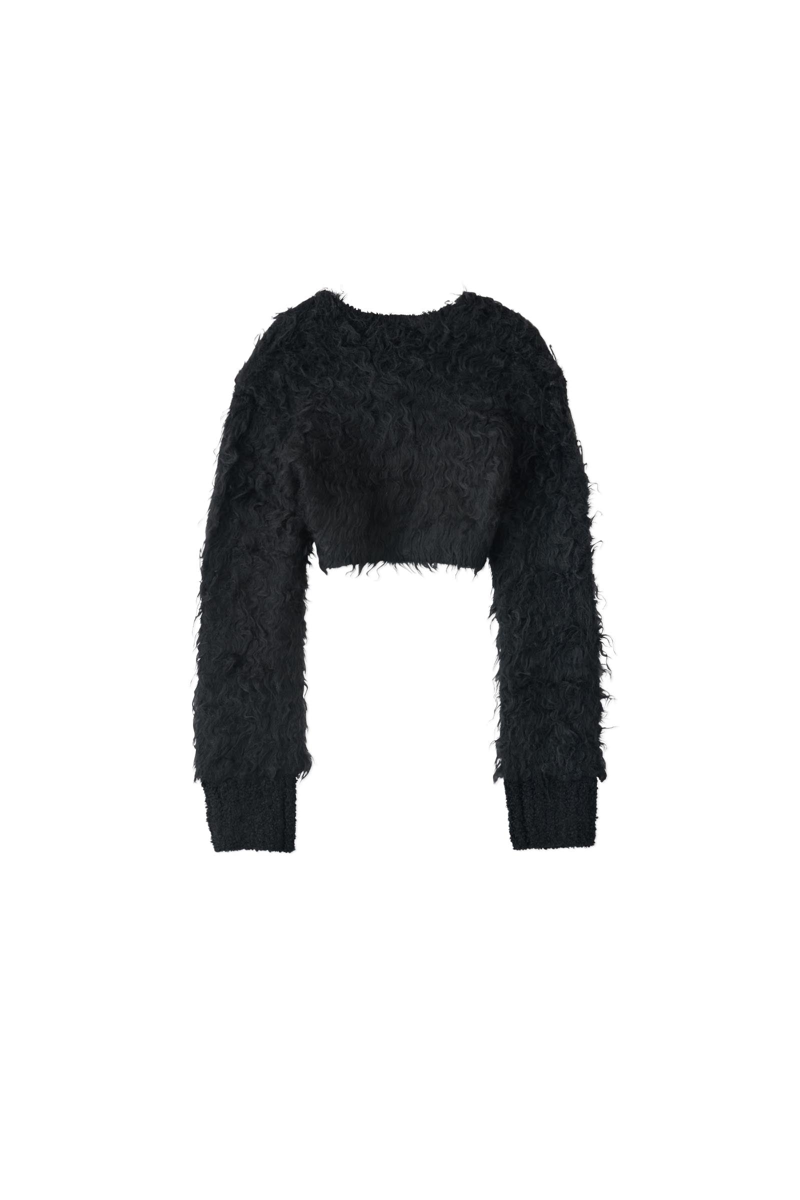 ショート丈でデザインしたシャギーカーディガンは、ボリュームのある長い毛足が特徴的。暖かく、軽い素材にはリサイクルポリエステルが含まれている。肌あたりもソフトで、ストレスフリーな一枚。