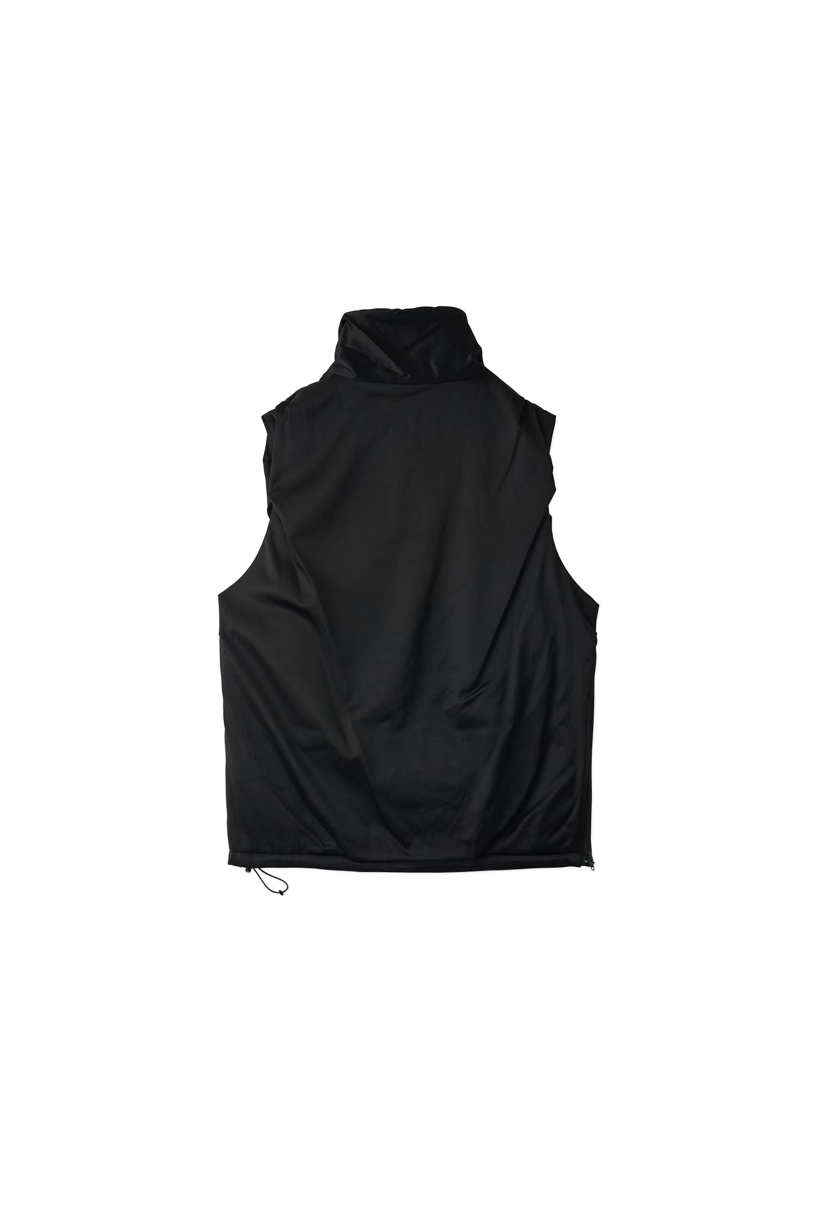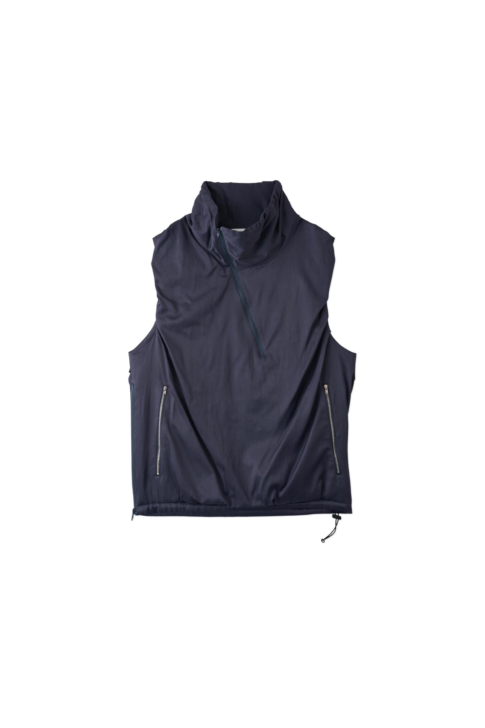 タックやギャザー、土台身頃と上身頃の大きさに差を出す事でドレープを表現。 薄い中綿を入れる事でドレープ自体に厚みと柔らかさを出し、アウトラインをハッキリさせないよう構成したベスト。