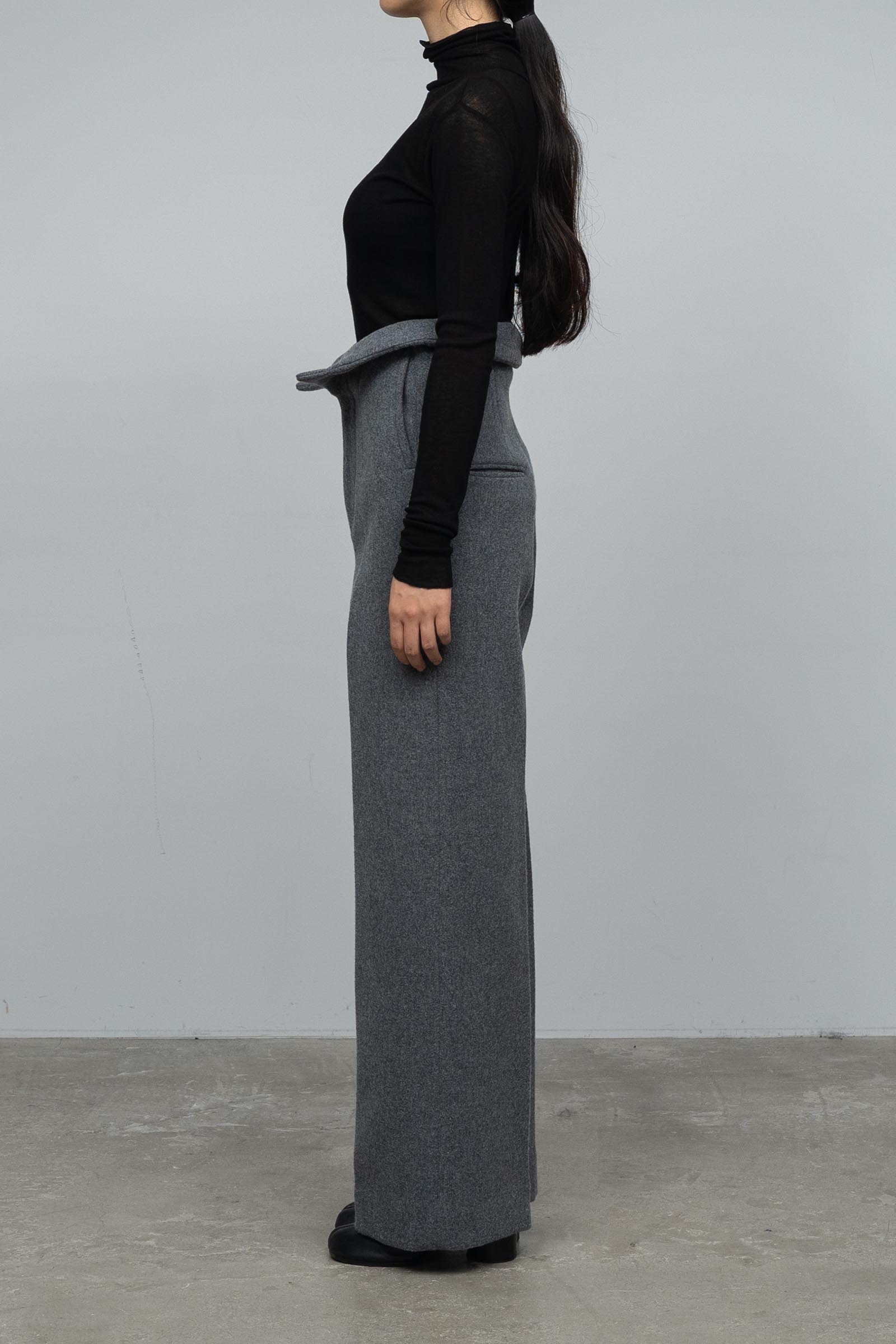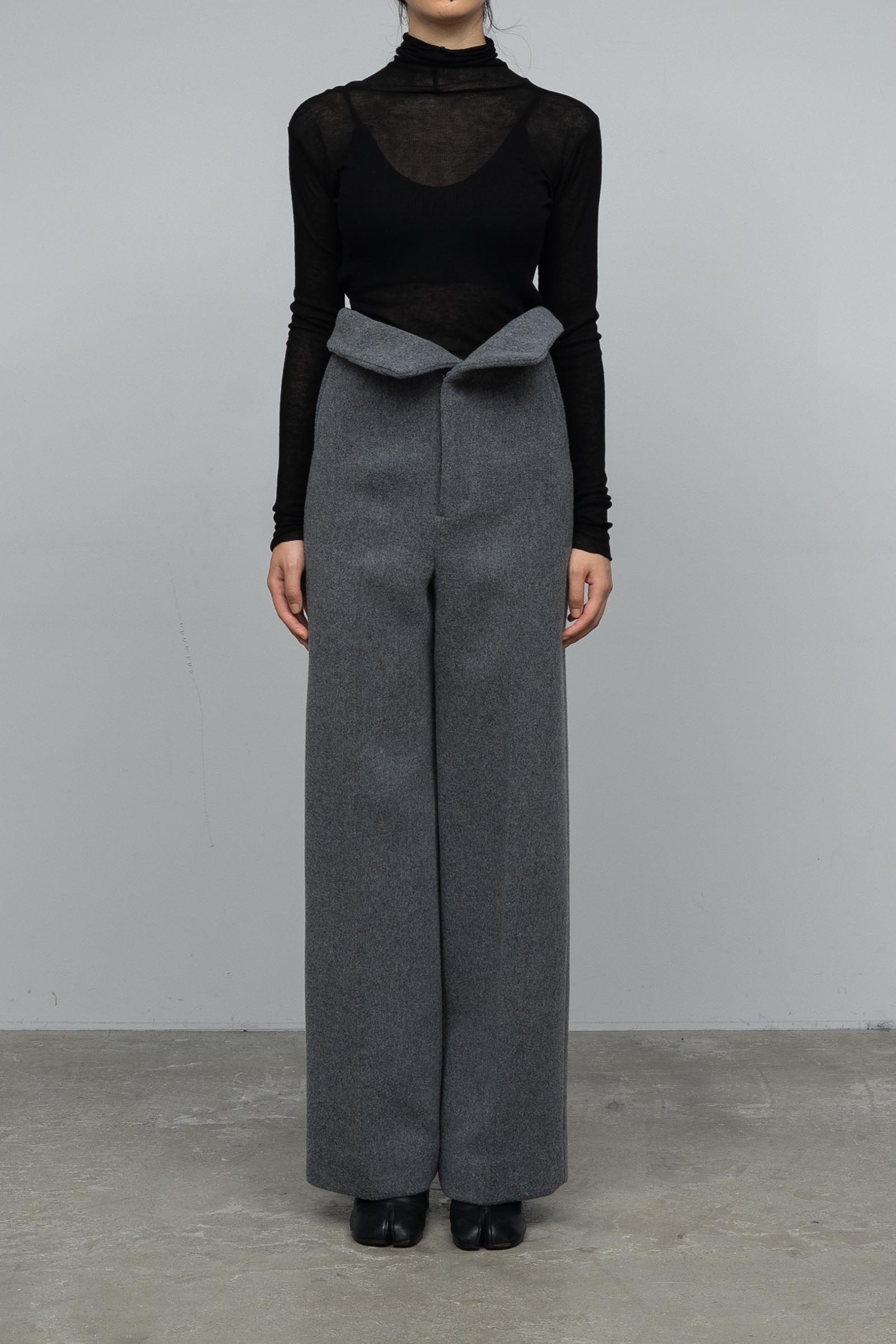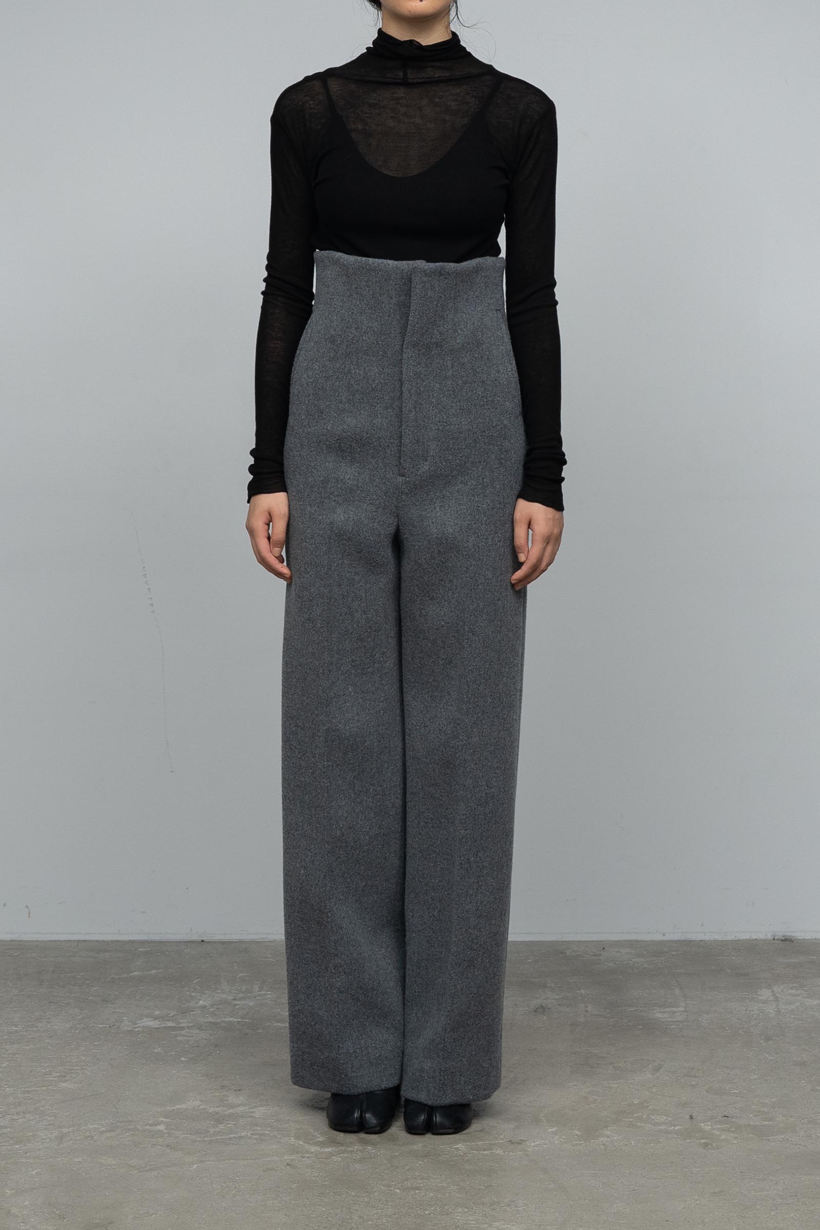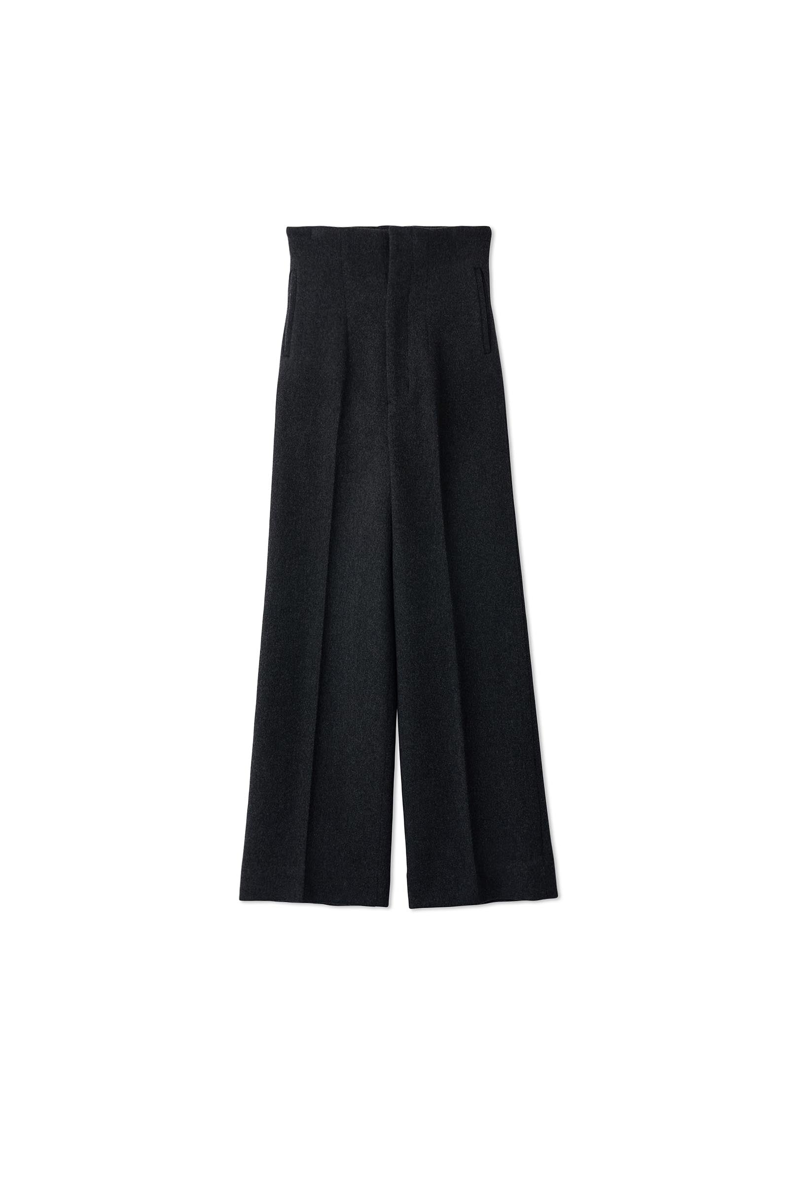 ダブルウール素材を使用したハイウエストパンツ。ウエストは折って着用も可能。シンプルでありながらブランドらしい雰囲気を出すことができる1本。
