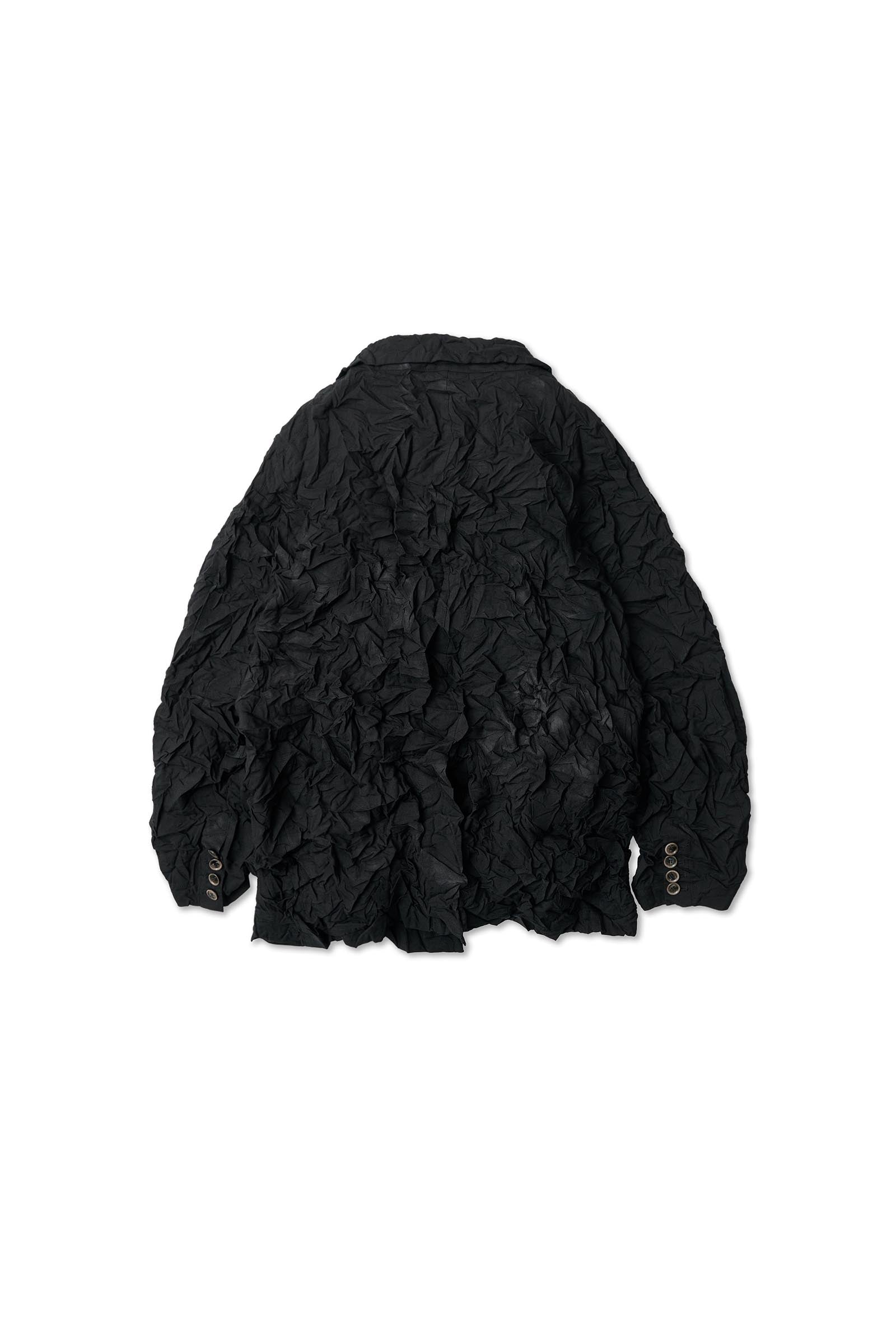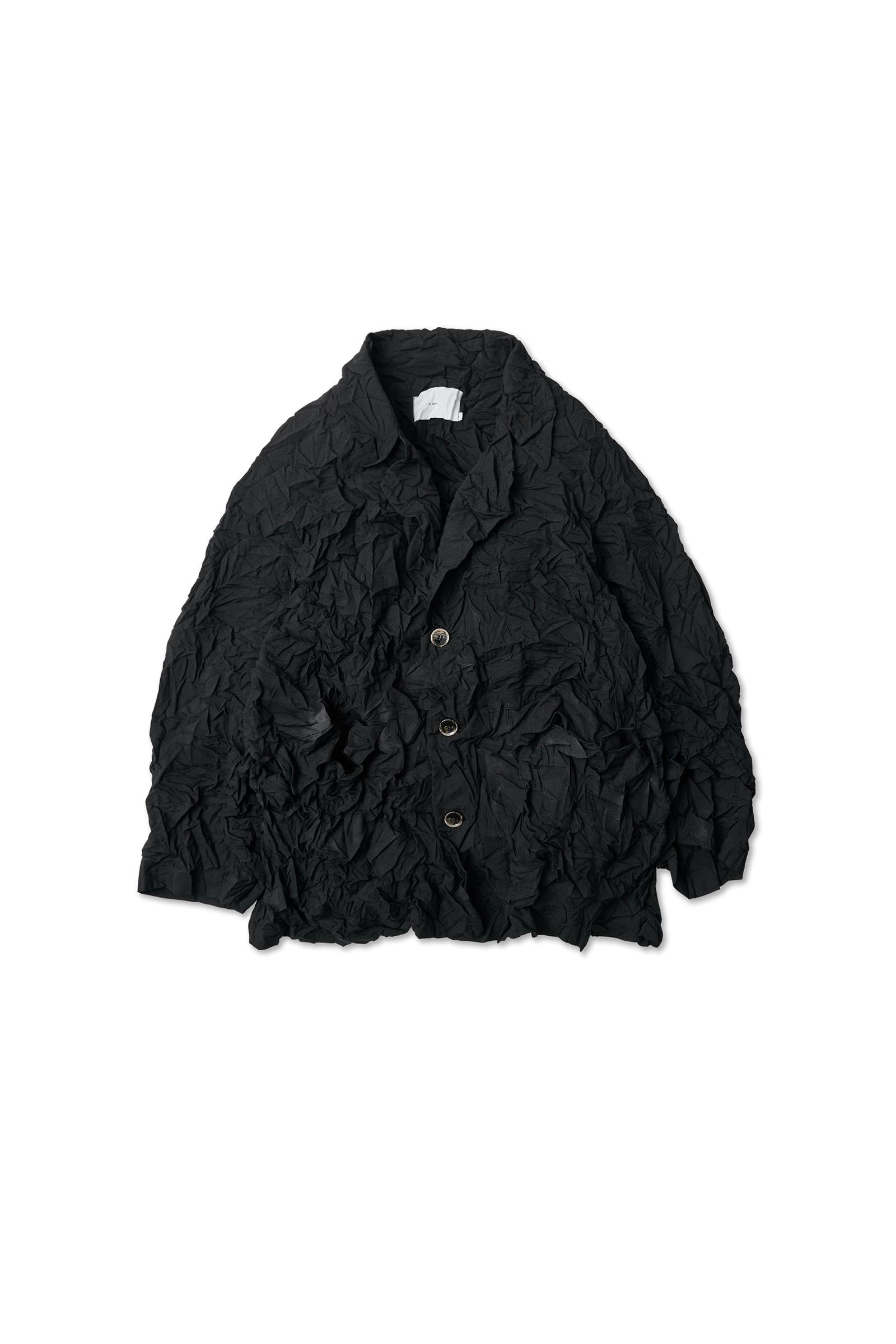 リネン調に仕上げられたポリエステル/アセテート素材に、形状記憶のキャッチワッシャープリーツ加工を施したジャケット。キャッチワッシャープリーツ加工を入れることで、肌に接する面積は少なくなり、肌離れが良くなることによる軽快な着心地を感じて頂ける。