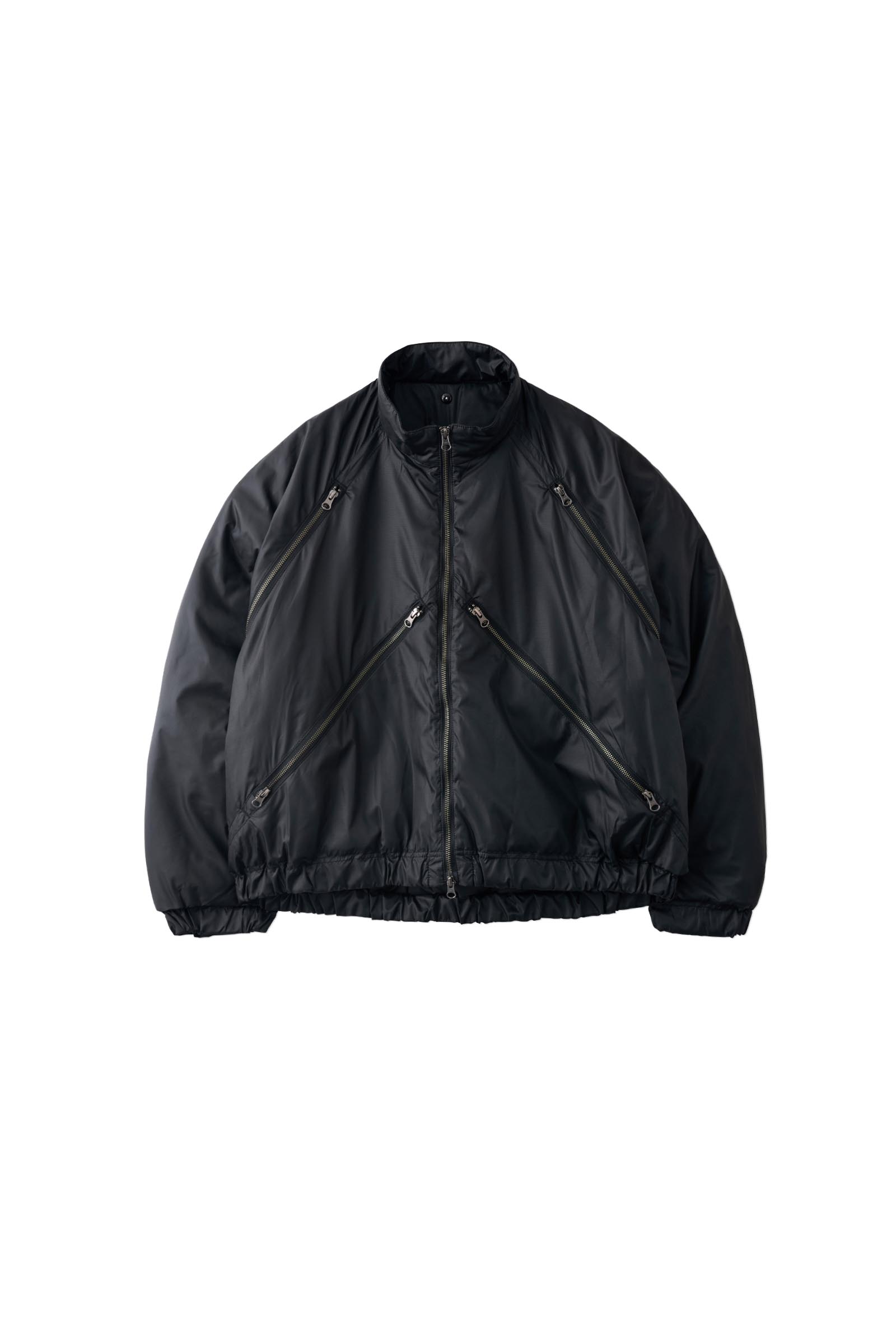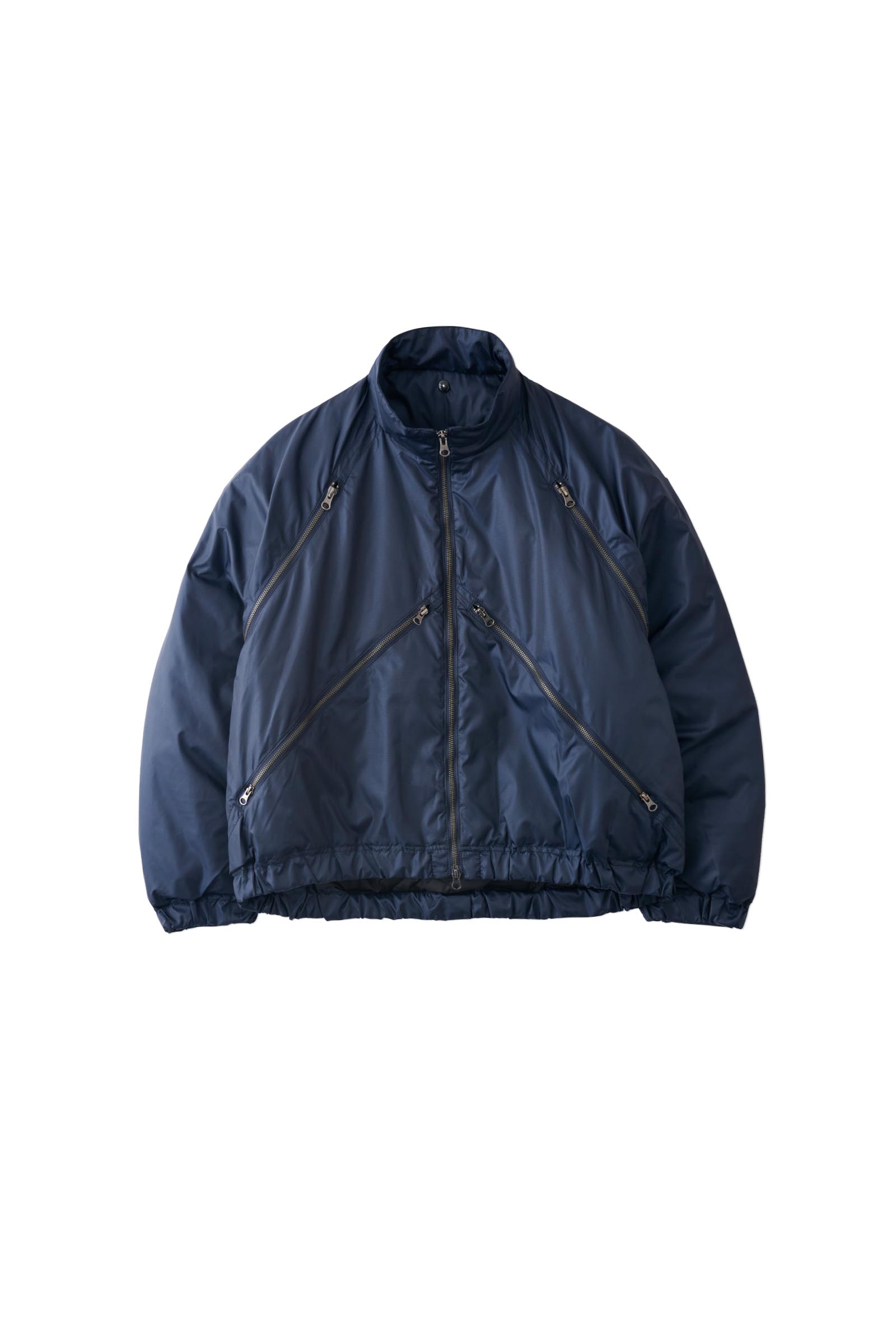 M-65フィッシュテールパーカーのライナーのアームホール底にある通気性のための開きから着想したブルゾン。アームホール底の開きをジップの開閉に置き換え、装飾的かつ機能的な細部に仕立てた。また過去に制作したシャツの派生のアイディアとして、表地と裏地の間のデットスペースを大きなポケット袋として捉えることを試している。