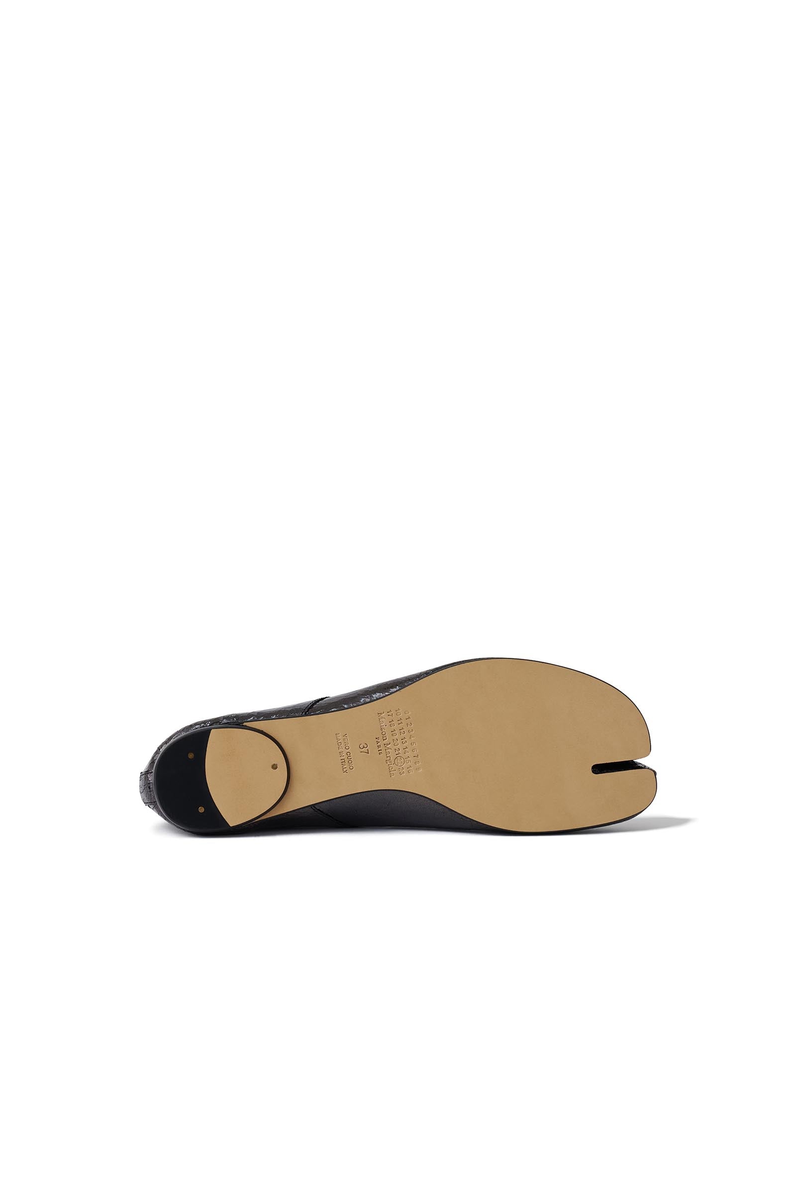 メゾン マルジェラによる「タビ」のニューバレエシューズ。アーカイブのバレエシューズシューズのデザインを踏襲している。15世紀の日本の伝統的な靴下からインスピレーションを得て、1989年のメゾンのデビューコレクションで発表されたスプリットトゥの「タビ」は、メゾンのアバンギャルドで反抗的なスピリットを表現しており、受け継がれる定番デザインとして、毎コレクションで探求され続けている。
