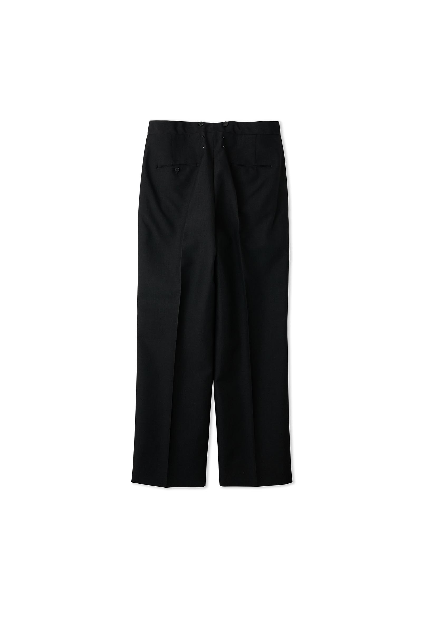コーデュラ製のオーバーサイズプリーツ入りトラウザーズ。ウエストタイ、ポケット付き。バックにはサスペンダー用のボタンが付いています。バックにはメゾン マルジェラのシグネチャーである4ステッチがアクセントに。