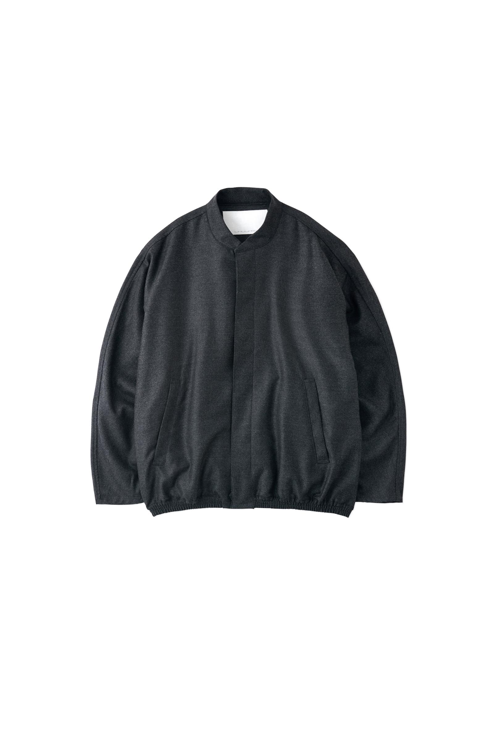 型は、新型となるバイアススリーブのブルゾン。昨年と異なる点は、後ろのギャザー分量を減らし、よりシャープにジャケットのような美しさを追求。こちらのブルゾンだけ、唯一生地を横に使っているため、シャドーヘリンボーンがうっすら横に走る様子も楽しめる。