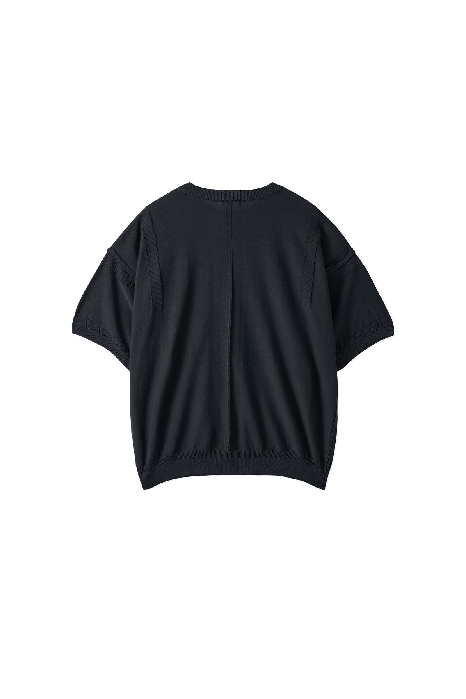 しなやかでなめらかなスーピマ超長綿をガス焼きで毛羽を焼いて除いた美しい光沢のある糸を使用。80番手の細い糸を束ねて12ゲージに仕上げた薄手ながらもしっかりとした編み地となっている。