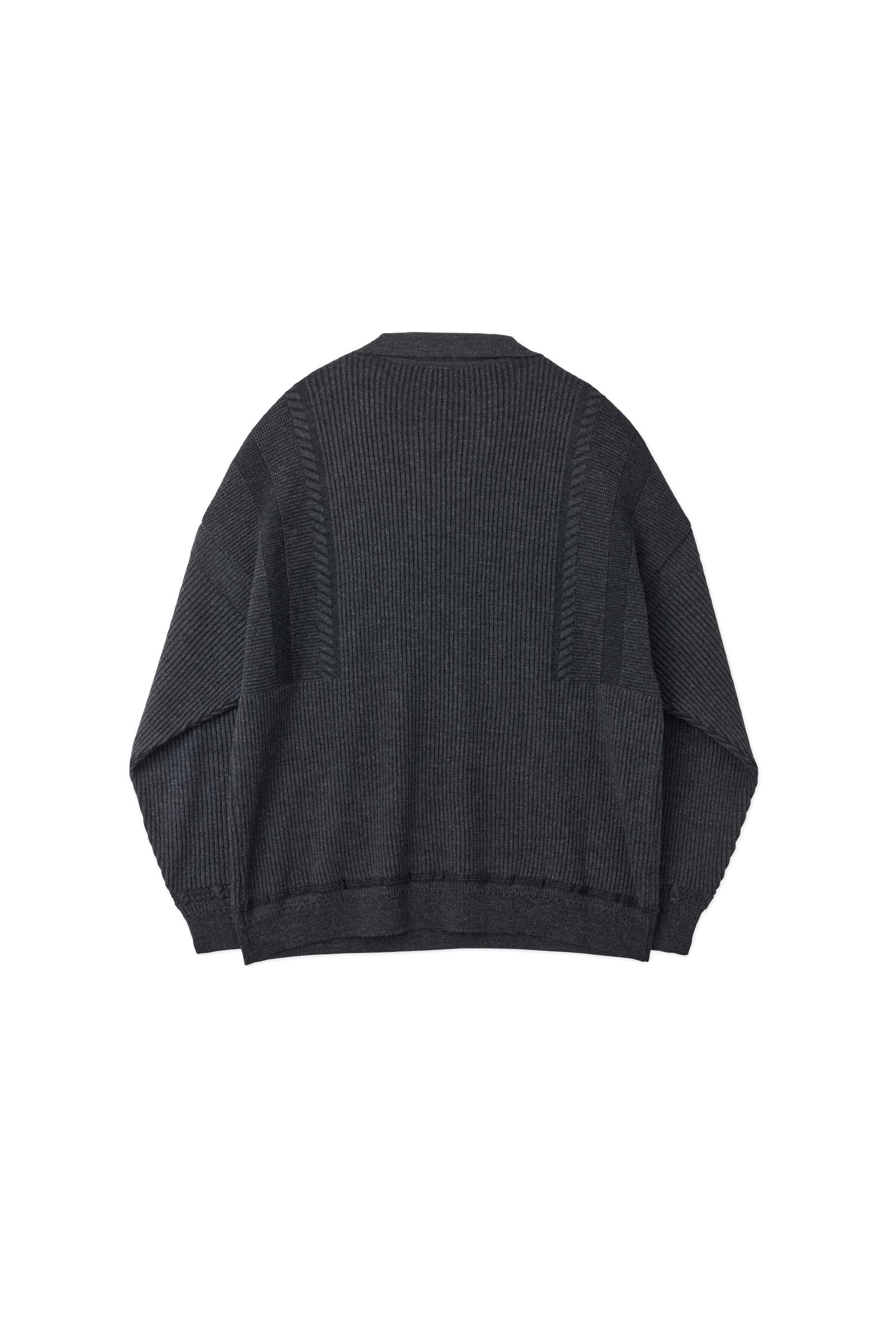 ニュージーランド産のファインウールと豪州メリノをブレンドしたなめらかで光沢のある防縮糸を糸を使用し、プレーディング編みで奥行きのある表情に仕上げている。