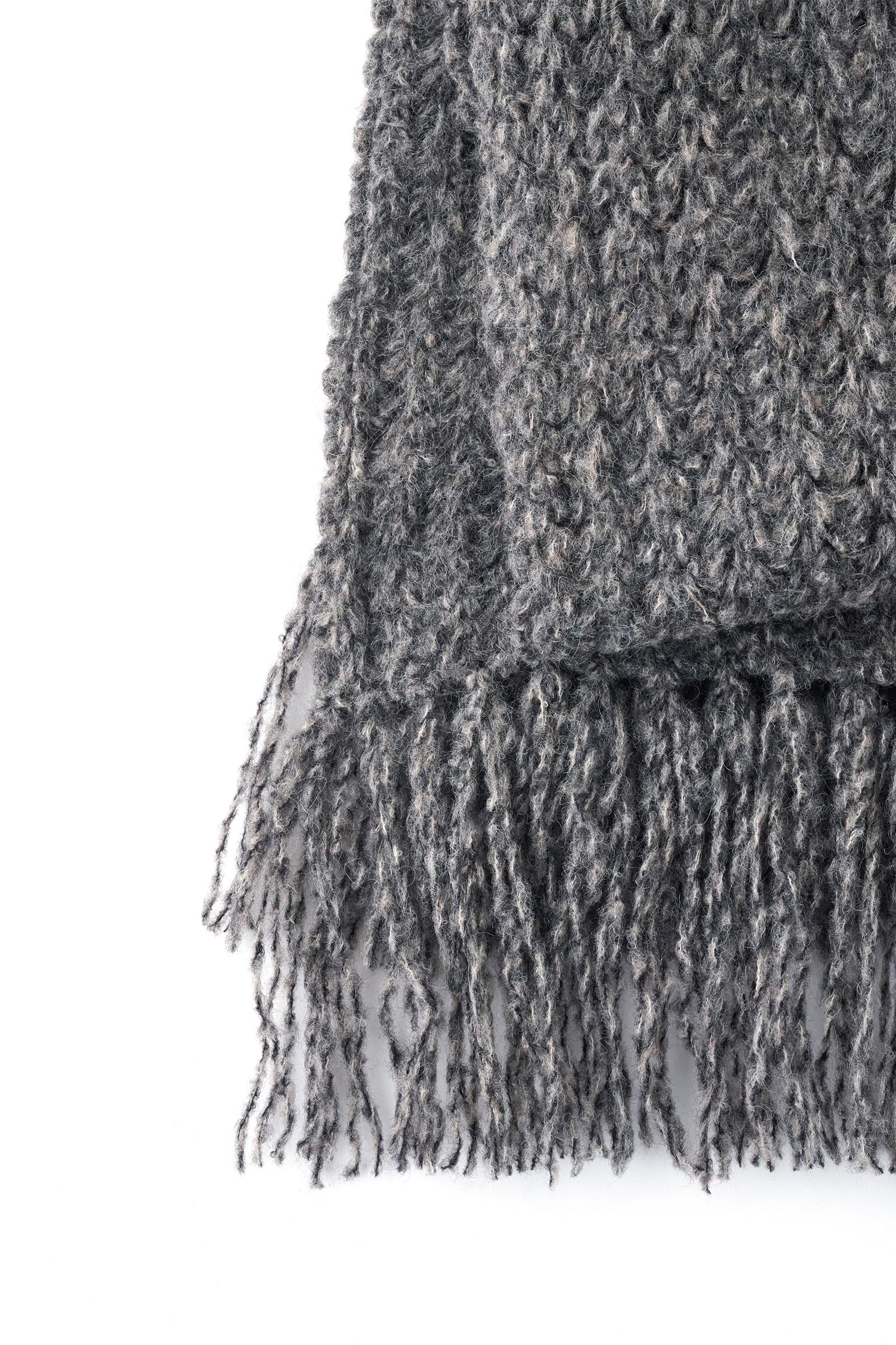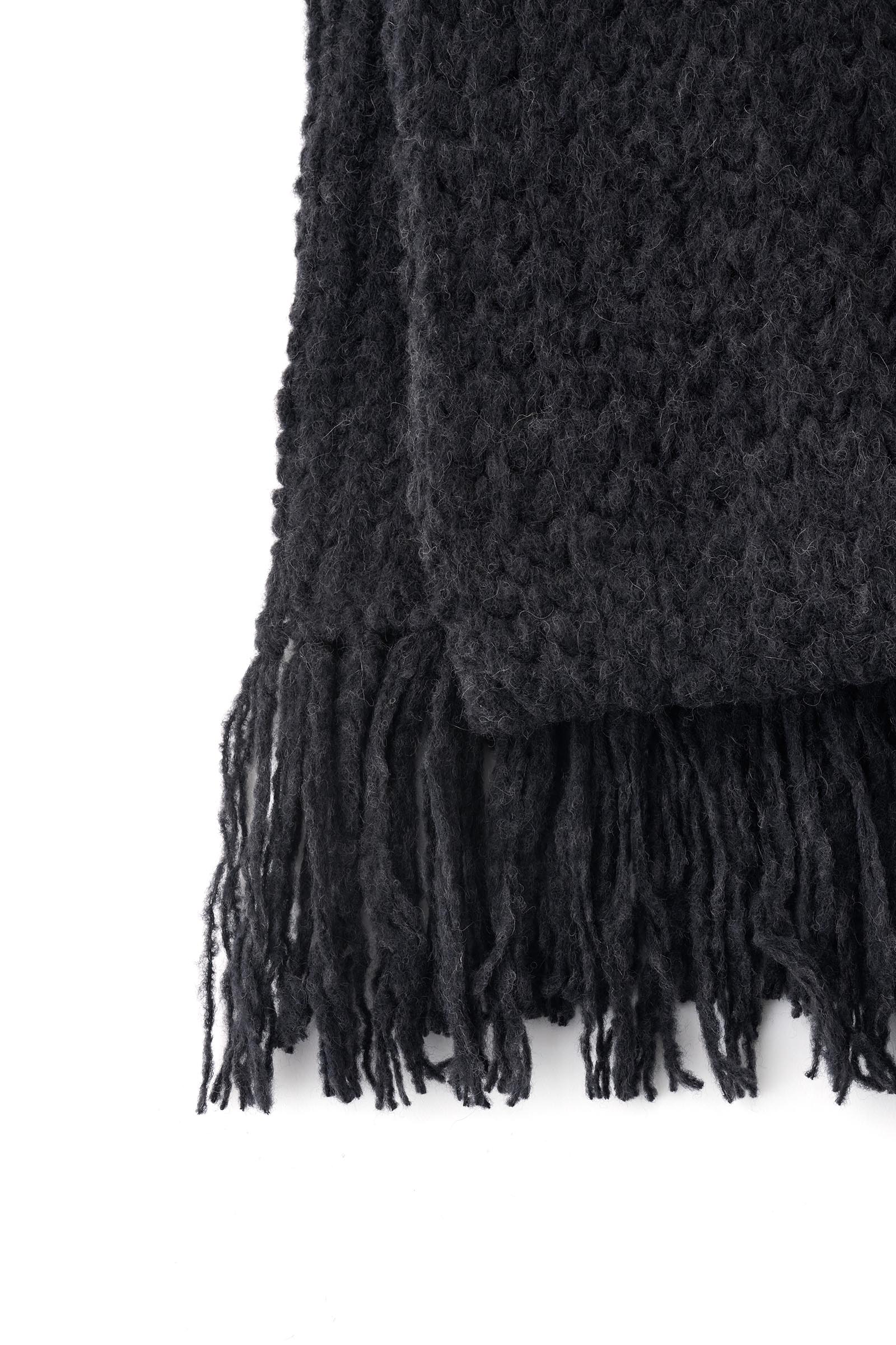 ベビーアルパカのブークレーヤーンを使用したビックワッフル編みのフリンジロングストール。アルパカの中でもより繊細で滑らかさに優れたベビーアルパカを使用したブークレの糸を3本MIXし、ループを摩耗加工し毛足を少し表現した素材を使用。ベビーアルパカなので肌触りは柔らかく暖かい素材で、見た目のボリュームに比べ軽さが特徴。毛足がありとても軽く、滑らかで膨らみのある風合いに仕上がっている。