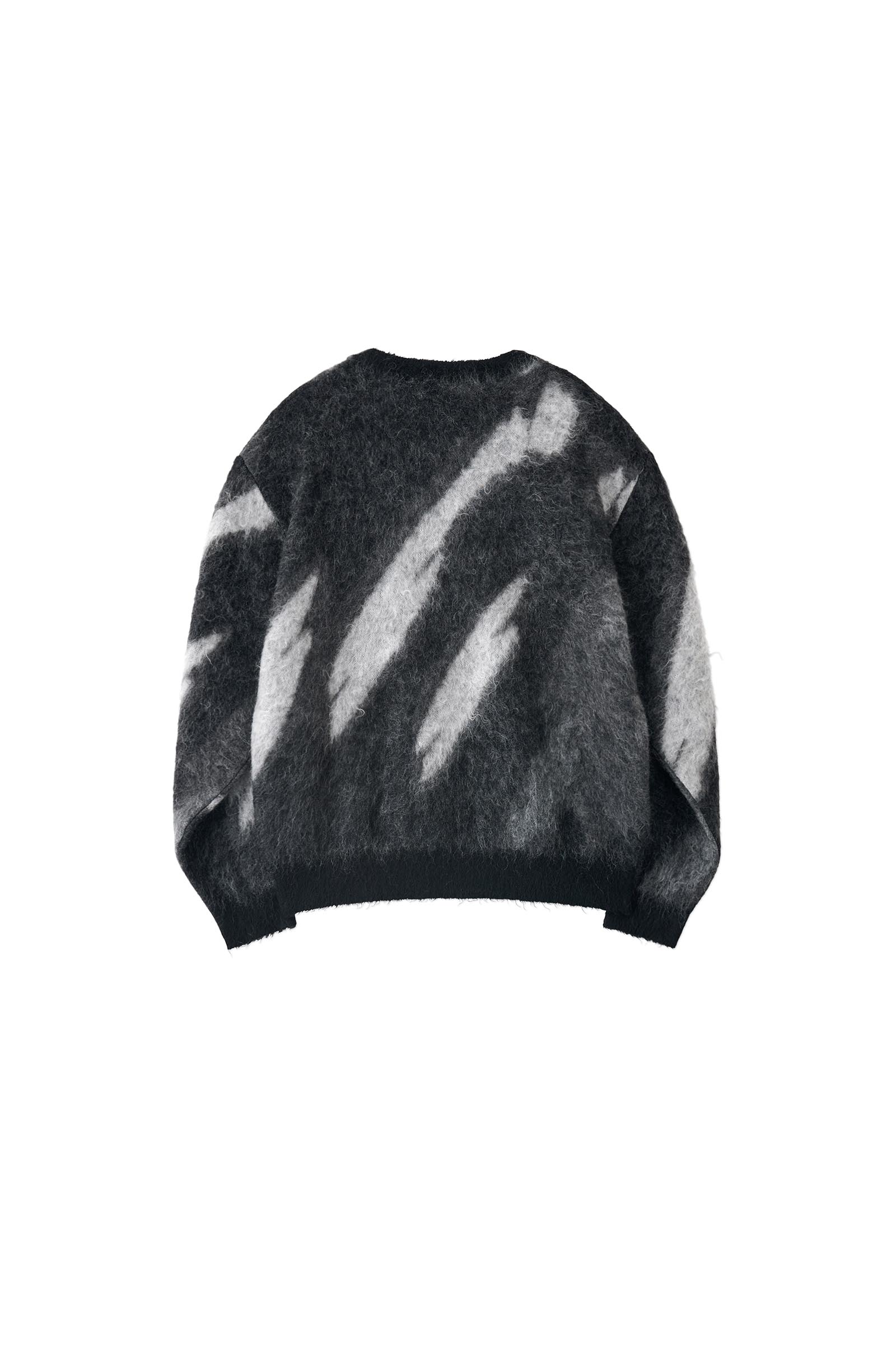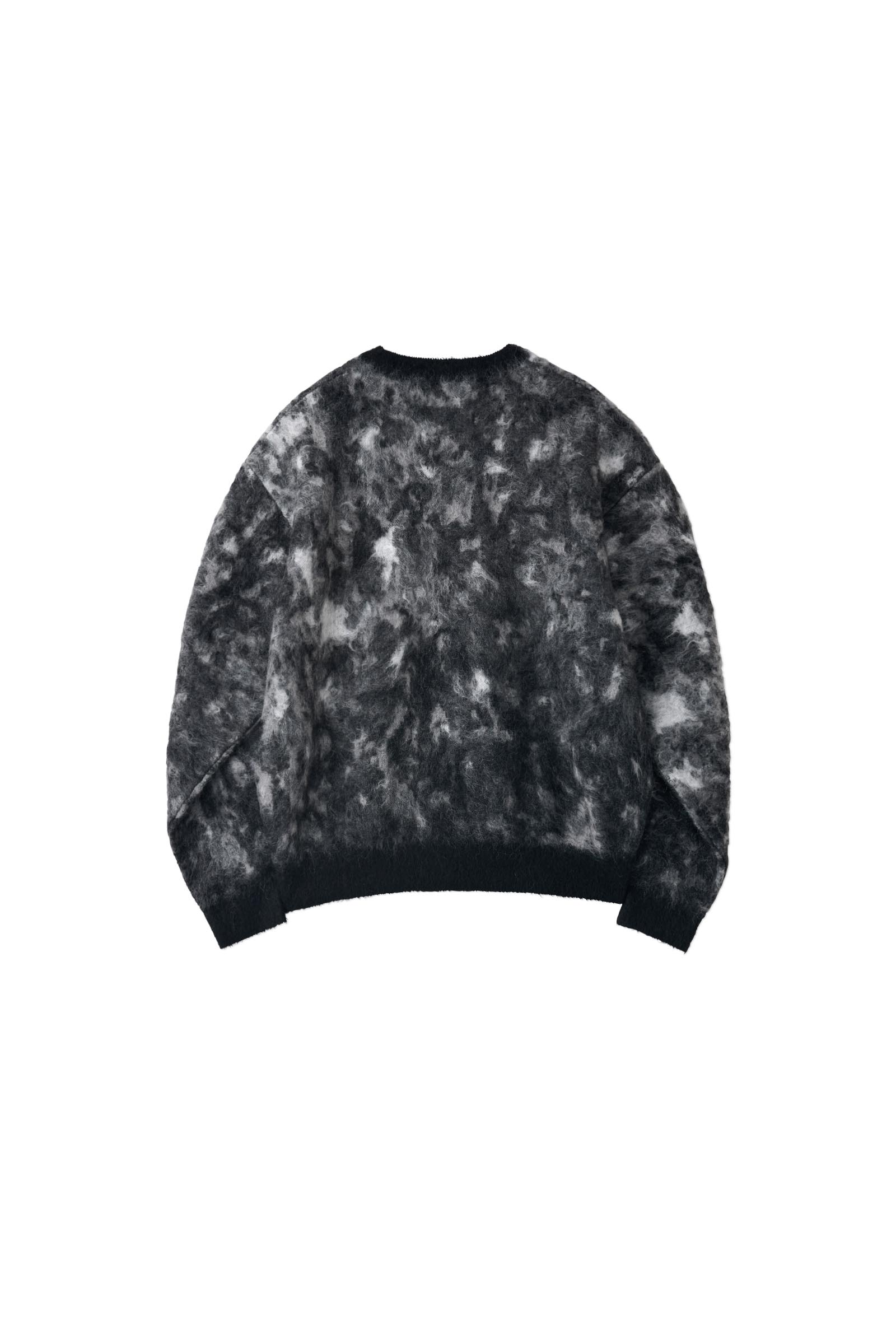 定番で展開しているジャガードモヘアシリーズ。今シーズンはマン・レイの1920年代に製作された映像作品の一瞬を切り抜いたような抽象的なグラフィックをセーターに落とし込んでいる。 シルエットは先シーズンに引き続き、ボリュームのあるゆったりとしたシルエット。